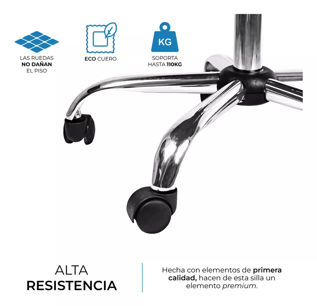 Las ruedas te van a permitir moverte y limpiar fácilmente tu espacio. Vas a poder trasladarla sin dificultad cuando lo necesites.Además, al ser giratoria te va a permitir rotar el asiento 360º sin la necesidad de cambiar de posición o moverte del lugar en donde estás.