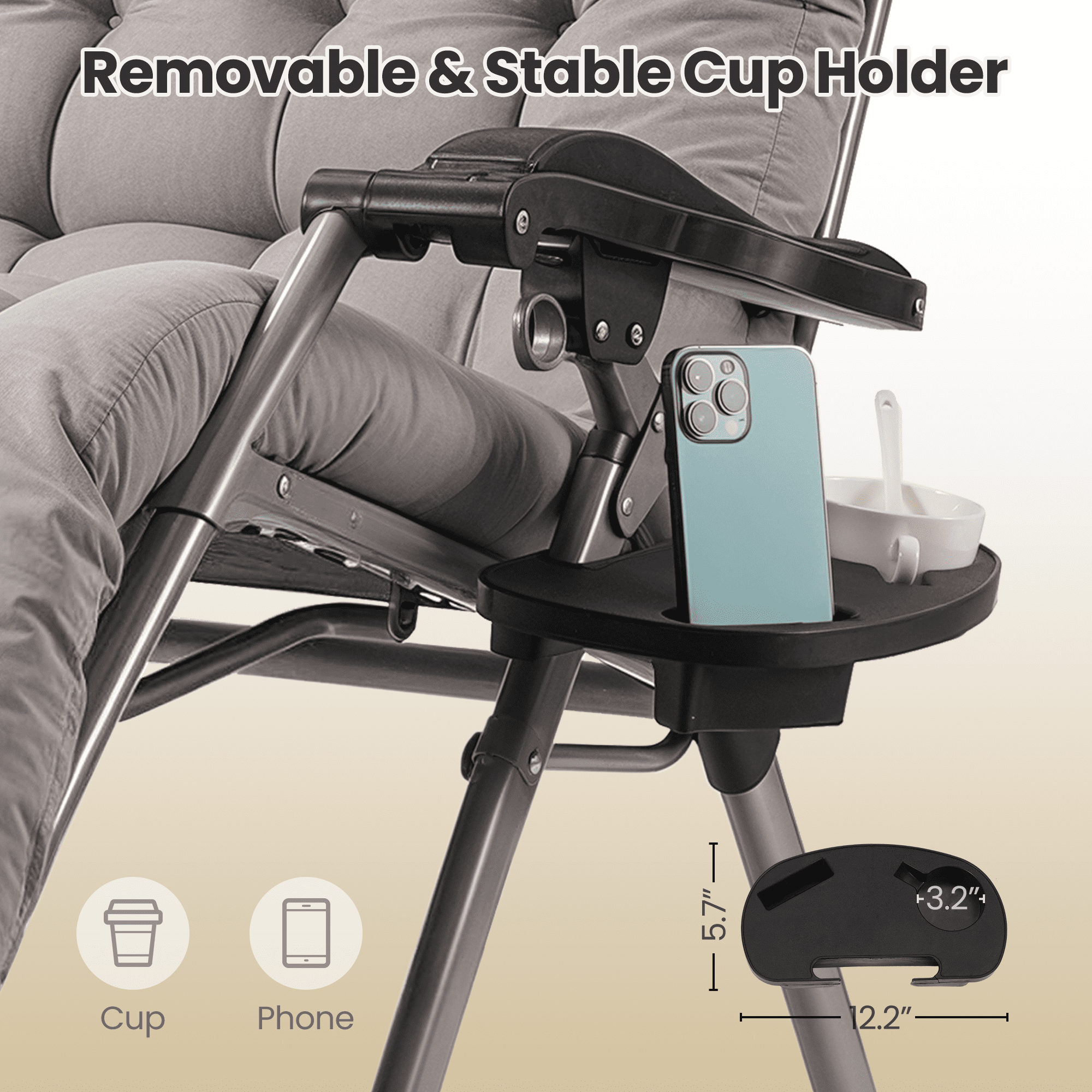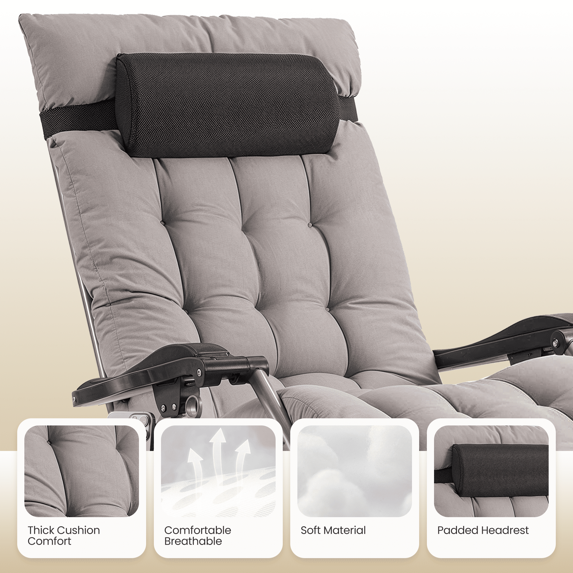 【Cojín más grueso de 10 cm, almohada portavasos】El sillón de gravedad cero con un cojín de 10 cm proporciona mayor suavidad y comodidad. El cojín es desmontable, lo que garantiza una buena ventilación incluso en verano, lo que lo hace adecuado tanto para invierno como para verano. El portavasos multifuncional permite guardar artículos como teléfonos, botellas de agua, llaves y más. La almohada acolchada mejorada le brinda una experiencia cómoda.