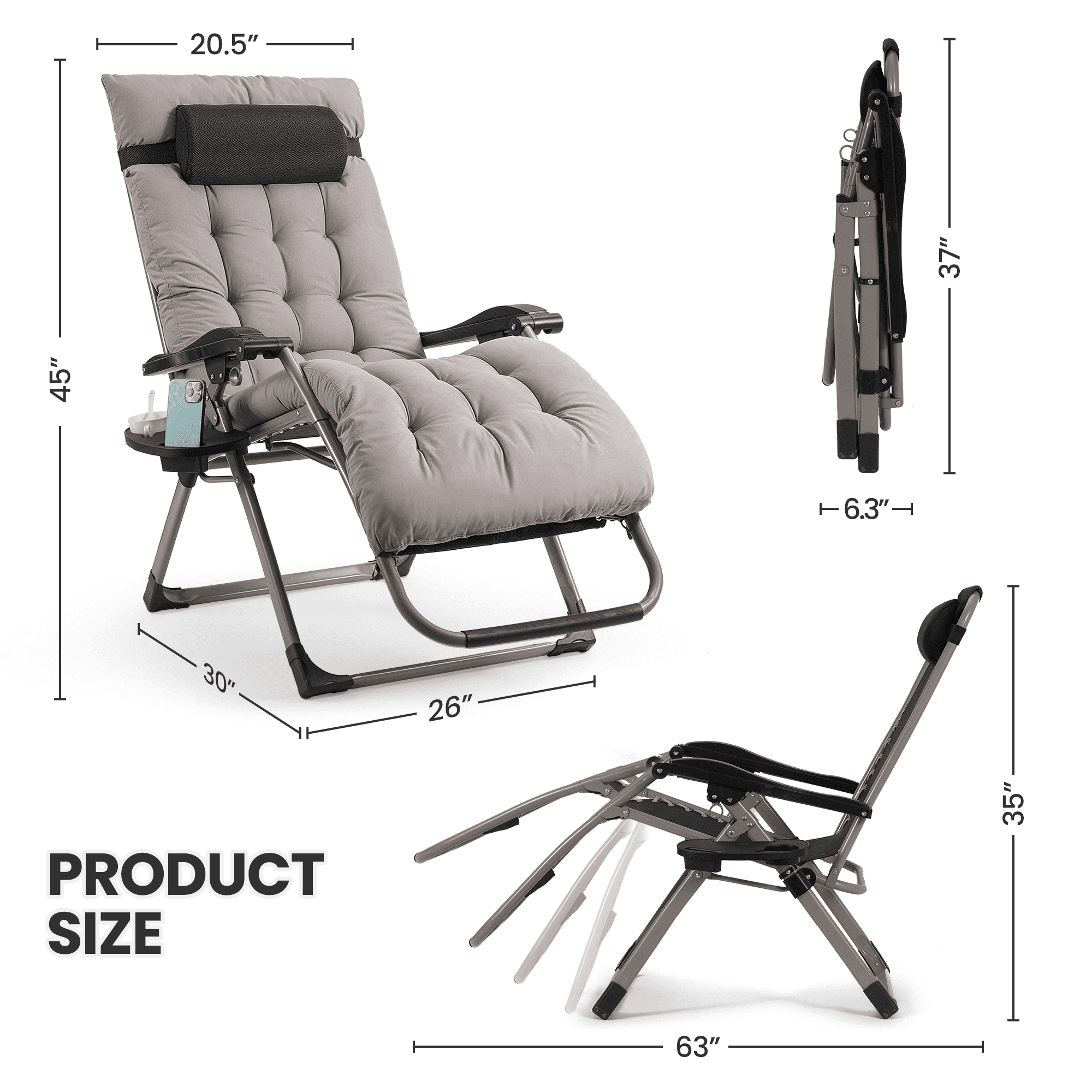 【Material de primera calidad y capacidad máxima de peso de 160 kg】La silla de gravedad cero extragrande y mejorada está diseñada para soportar hasta 160 kg. Los tubos de acero de 40 mm (1,6 pulgadas) de grosor garantizan estabilidad y estabilidad, mejorando su capacidad de carga y durabilidad, siendo especialmente adecuada para patios exteriores. El tejido texlin mejorado, las correas elásticas dobles, la malla transpirable y los cojines extraíbles proporcionan mayor comodidad.