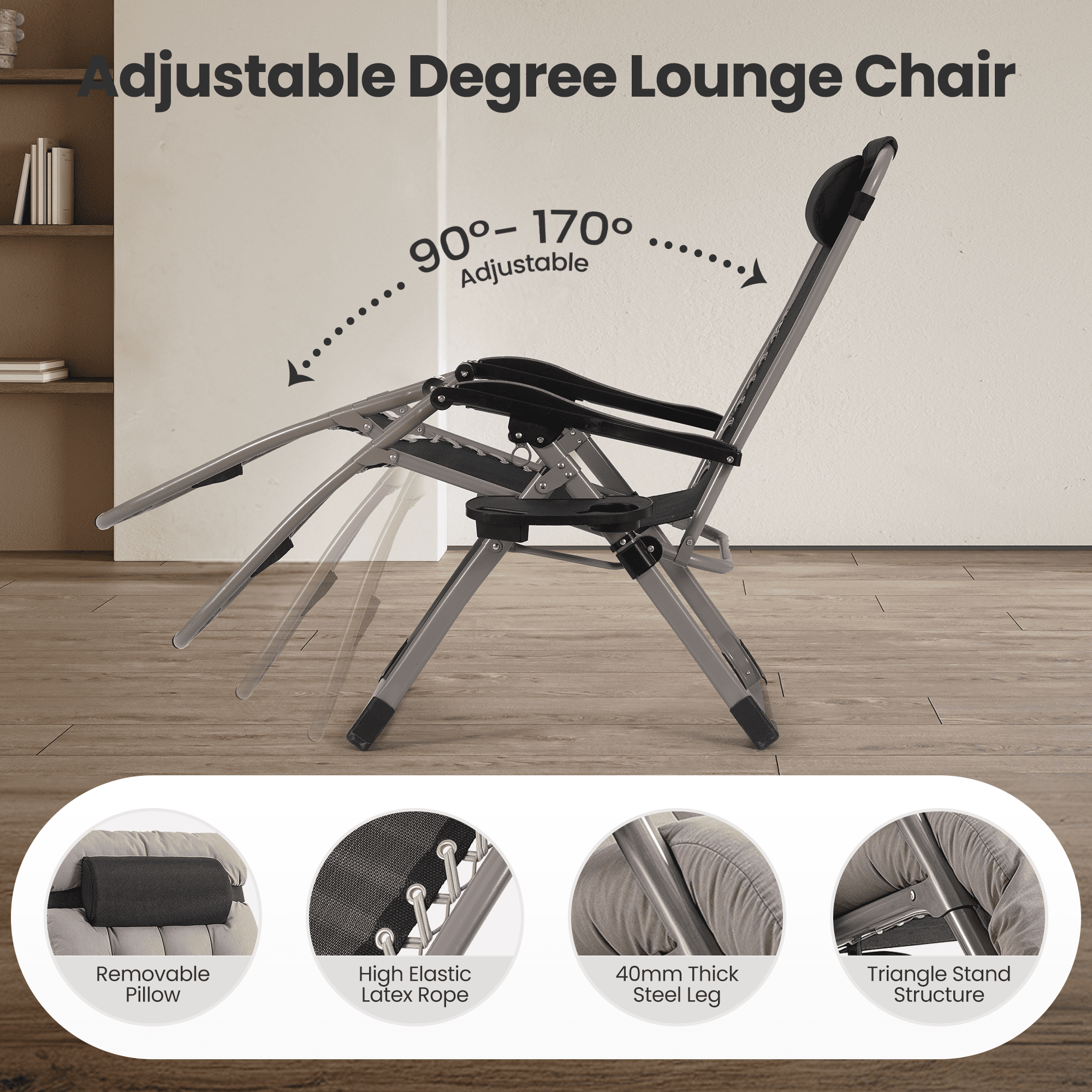 【Bloqueo mejorado, gravedad cero real】El bloqueo mejorado de aleación de aluminio facilita el ajuste de la silla de 90° a 170°. Las ranuras de 8 mm de profundidad fijan el sillón reclinable de forma segura y más duradera que las hebillas de plástico o aluminio de 2 mm anteriores. Esto garantiza un uso más seguro y evita que se desplace accidentalmente. La silla antigravedad se eleva hasta 50 cm del suelo, logrando un verdadero ángulo de gravedad cero.