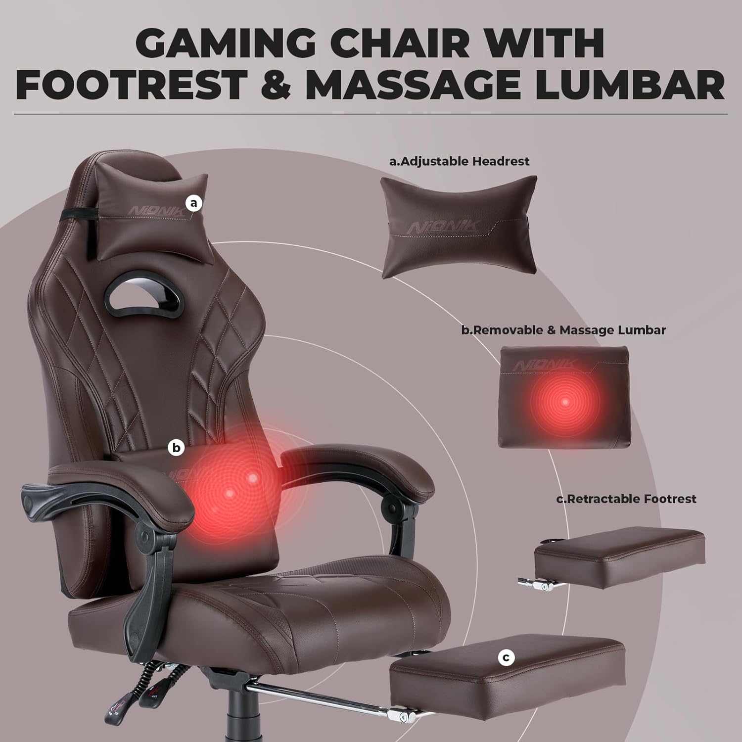 - Silla de juego de alta comodidad: la silla de jugador viene con un reposacabezas ajustable y un soporte lumbar de masaje. Cuando tu cuello y cintura están doloridos por sentarse durante demasiado tiempo, una almohada para la cabeza y un soporte lumbar de masaje pueden aliviar tu fatiga. Además, este cojín, respaldo y reposabrazos para silla de juego están rellenos de algodón de alta densidad y elástico con una funda de piel suave que tiene la misma elasticidad y comodidad que un sofá. Sentarse en él te dará la mayor relajación.