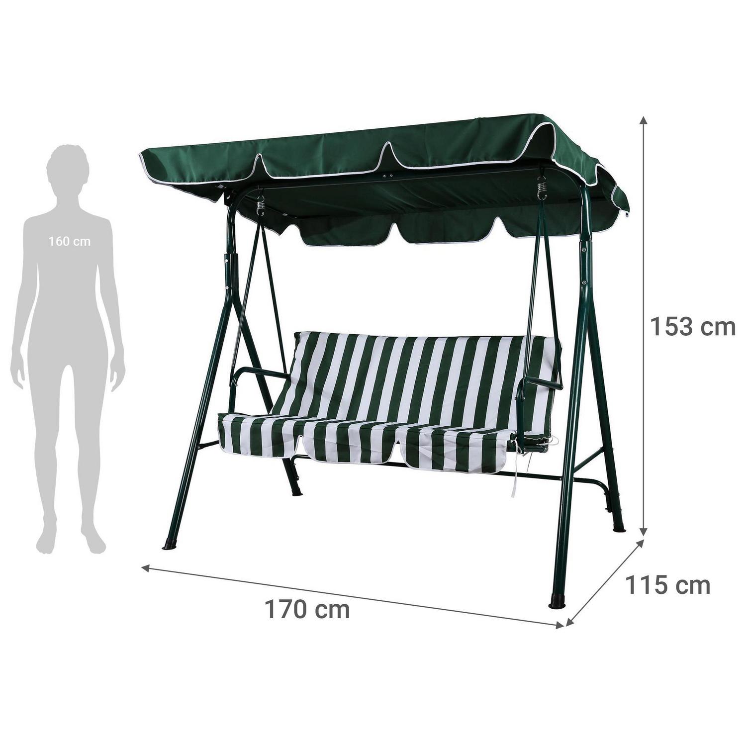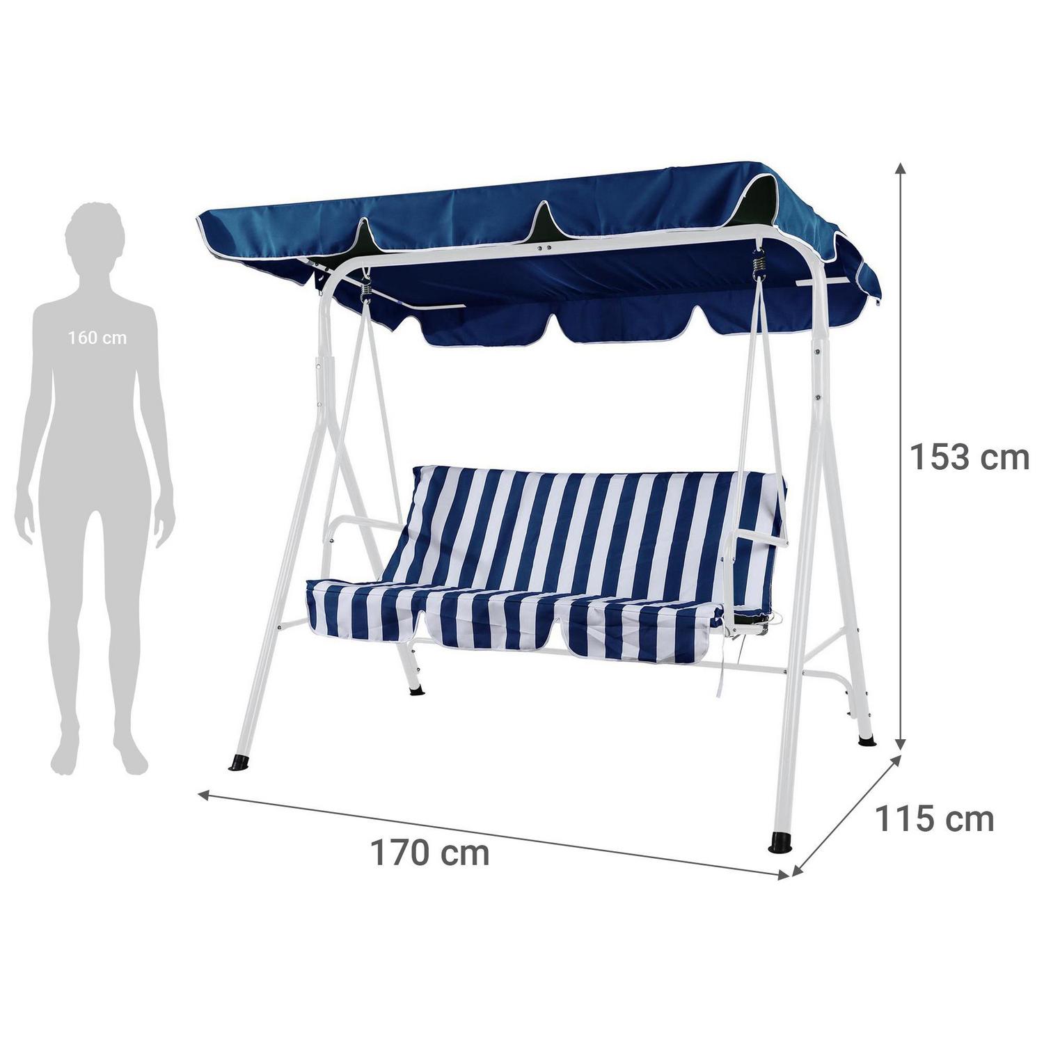 El sillón columpio para 3 personas con rayas azules es una excelente opción para disfrutar del aire libre y relajarse en el jardín, terraza o patio. Este cómodo columpio ofrece espacio para tres personas y presenta un diseño con rayas azules que le da un aspecto atractivo y fresco. Con un ancho de 170 cm, puede acomodar cómodamente a tres personas.