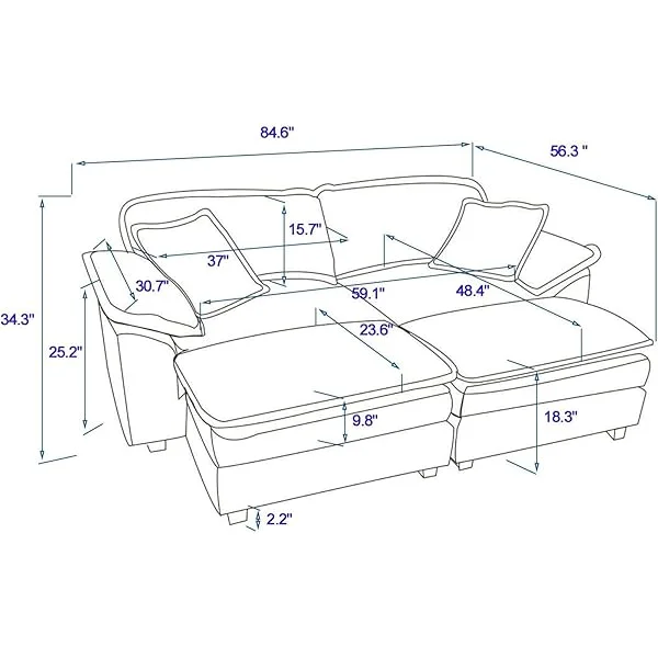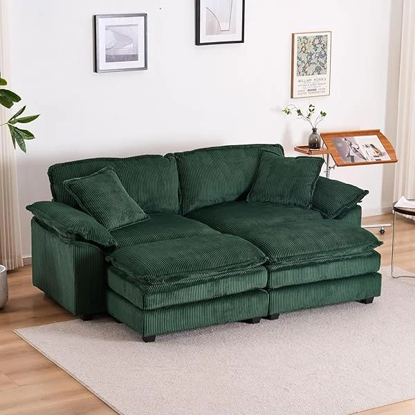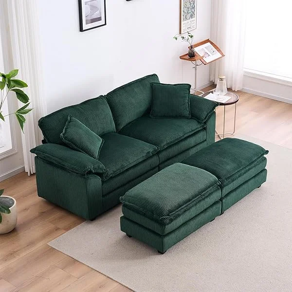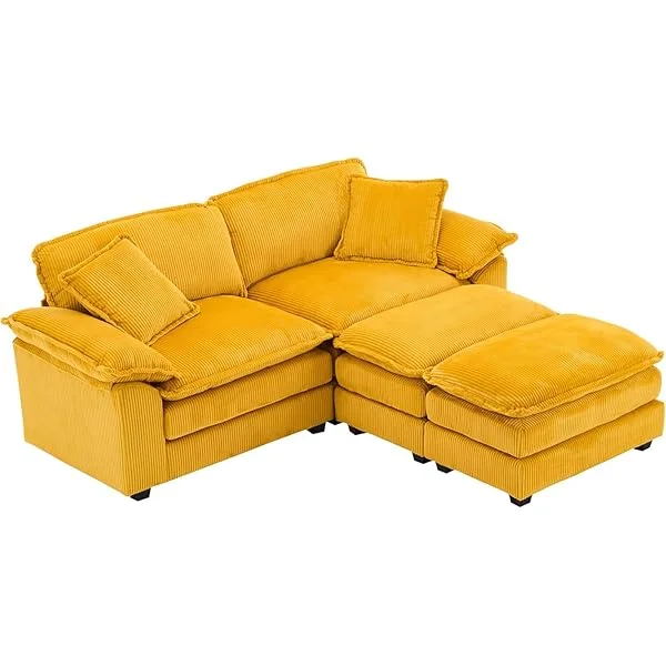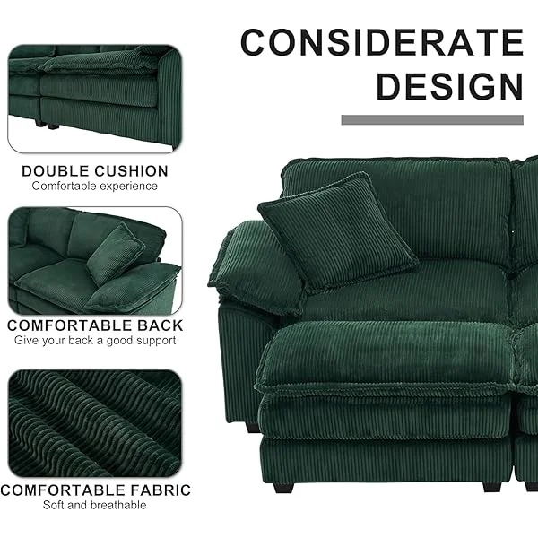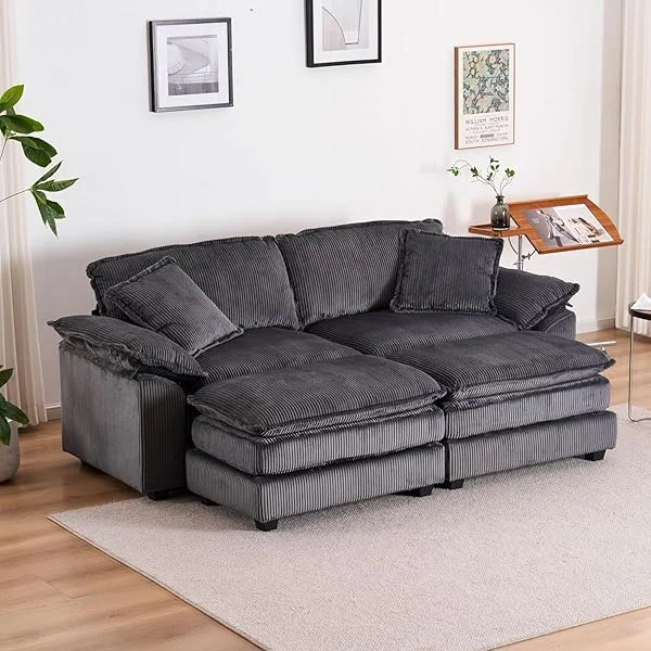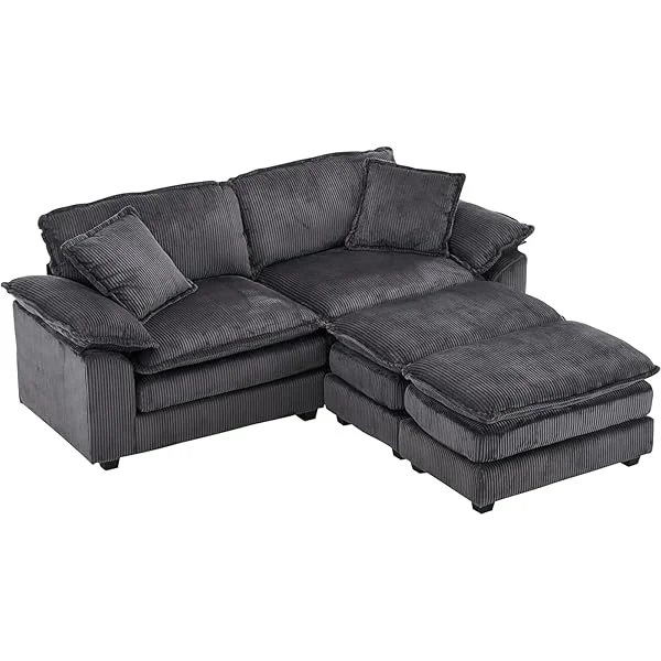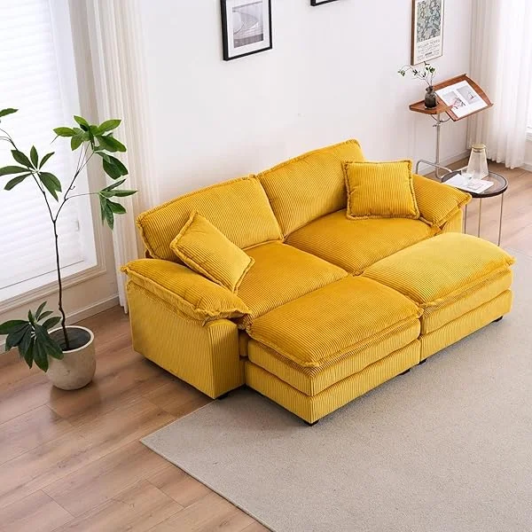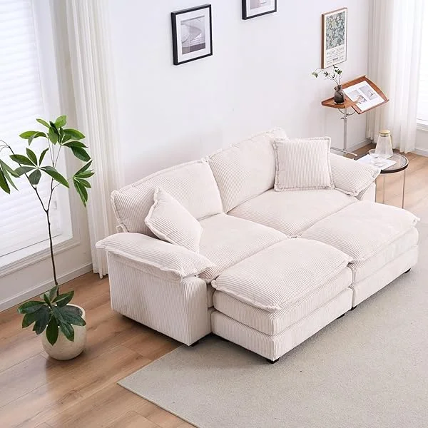 【Fácil montaje】Mide 84,6" de largo x 56,3" de ancho x 34,3" de alto, el sofá incluye instrucciones claras y herramientas para un montaje rápido y sencillo. 【Diseño modular】Ideal para reuniones familiares, siestas o momentos de calidad con amigos, este elegante sofá de pana enfatiza la durabilidad y la artesanía detallada. 【Incluye 2 almohadas】Viene con dos almohadas de respaldo para mayor apoyo lumbar y comodidad, perfecto para ti y tu pareja. 【Comodidad de pana suave】Tapizado en pana suave y acogedora, este sofá cuenta con una amortiguación de esponja de alta resiliencia reforzada con resortes para una comodidad superior y retención de la xforma. 【Material de alta calidad】Fabricado con un marco de madera maciza para una mayor robustez y durabilidad, lo que garantiza un lugar de descanso confiable después de un día ajetreado.