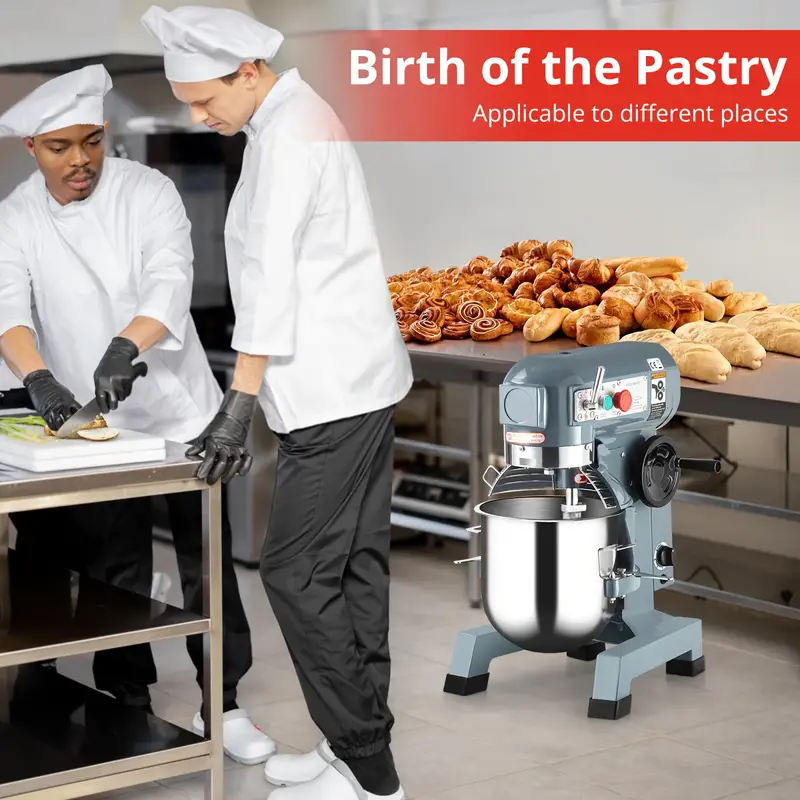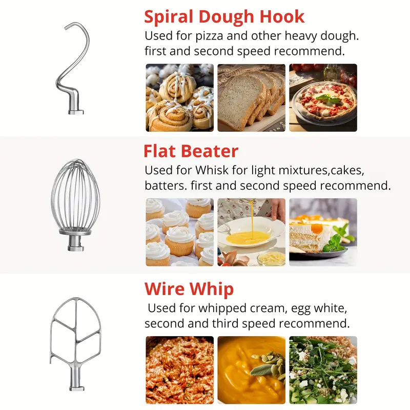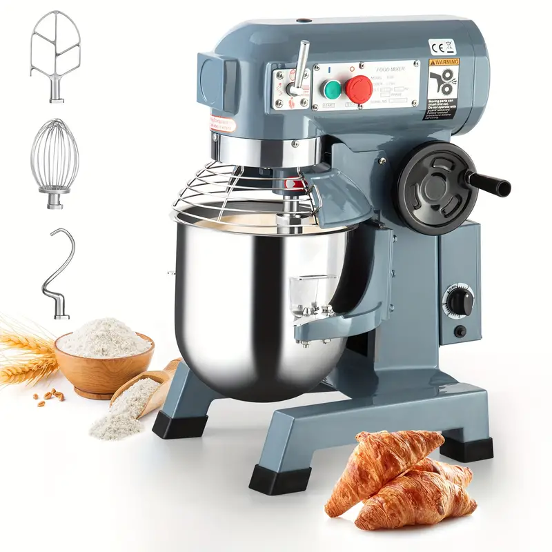 Fabricado con acero inoxidable 304 de alta calidad, este mezclador de alimentos comercial es resistente, duradero, fácil de limpiar y mantener, garantizando un uso prolongado. Viene con tres accesorios de mezcla intercambiables: un gancho de masa en espiral, una paleta plana y un batidor de alambre. Al seleccionar el accesorio adecuado para diferentes ingredientes, puedes lograr resultados de mezcla superiores.