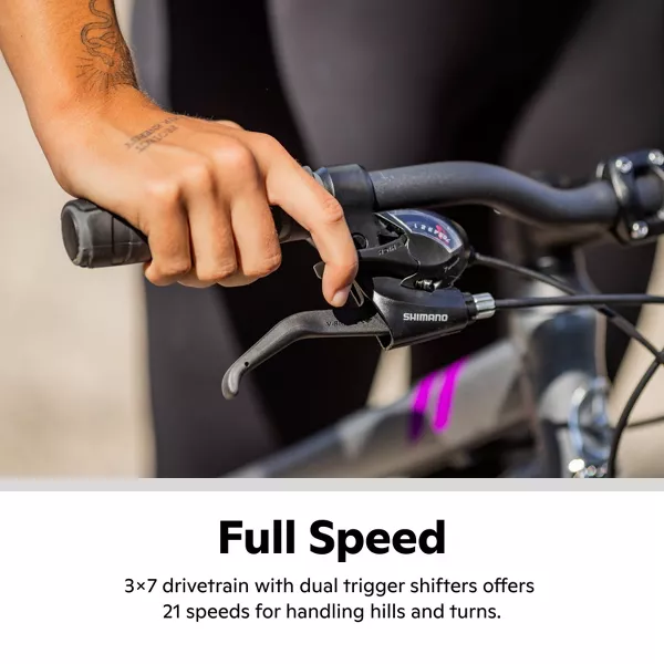 21-speed trigger shifters provide precise gear changes and Mechanical disc brakes deliver superior stopping power