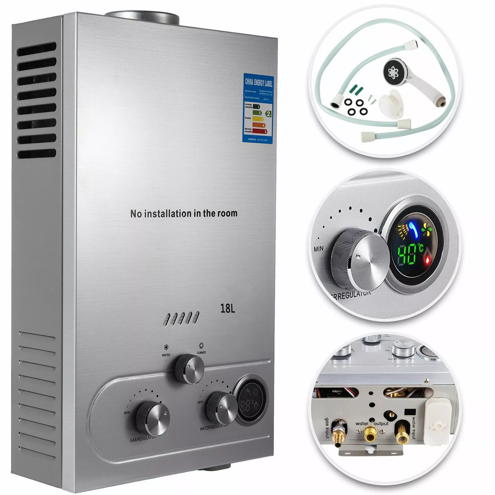 El calentador de agua a gas 18L-LNG es perfecto para la casa. Toma una ducha caliente o lava a los perros. Lo hace ideal para áreas fuera de la red u otras áreas donde no hay electricidad disponible. Seguridad, el calentador de agua a gas para lograr la separación del calor y el calor, bañado en el baño, instalado en la cocina, para evitar el riesgo de fugas durante el proceso de baño.