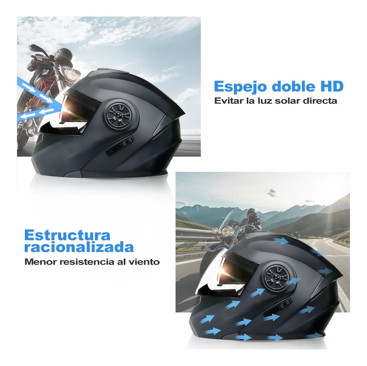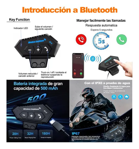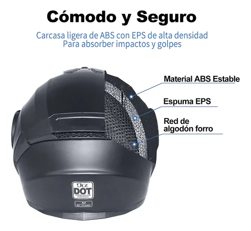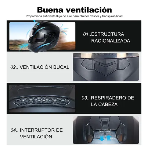 El casco de motocicleta con auriculares Bluetooth se puede combinar con el teléfono. Escuche música, responda automáticamente llamadas, radio FM, etc. El sistema estéreo de alta calidad le permite cambiar entre llamadas y música mientras conduce.