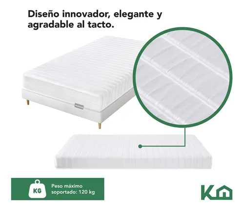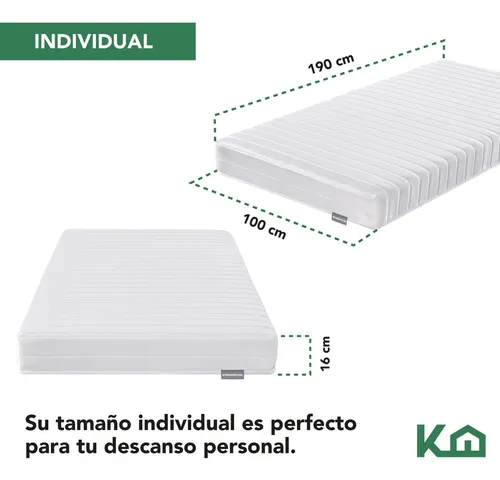 - Sensación de firmeza para un descanso garantizado. Medidas generales del colchón: 190x100x16 cm. Peso máximo soportado: 120 kg.