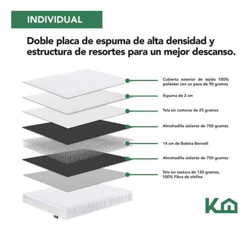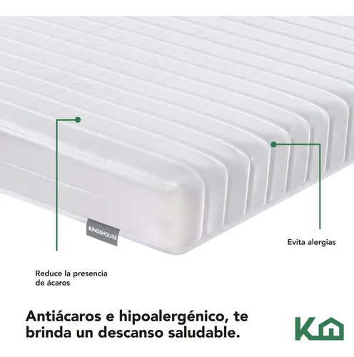 Al recostarte te sentirás abrazado, gracias a sus componentes: Cubierta exterior de tejido de poliéster, espuma de alta densidad que se adapta a la forma de tu cuerpo y alivia los puntos de presión, tela sin costura que mantiene la superficie más uniforme y no irrita tu piel; almohadilla aislante para mejorar el rendimiento y Bobina Bonell para un soporte firme. Además, gracias a que es antiácaros e hipoalergénico, no genera alergias y es resistente a la acumulación de ácaros del polvo.