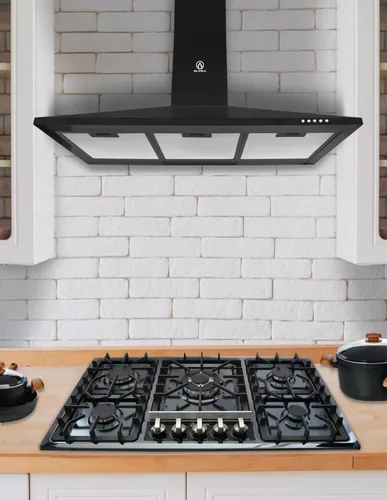 La parrilla de gas 5Q-EB-87 y campana de pared CM-90-BLACK tienen un diseño con cubierta de acero inoxidable que permite una mayor durabilidad.