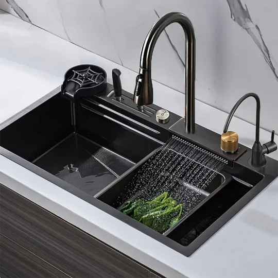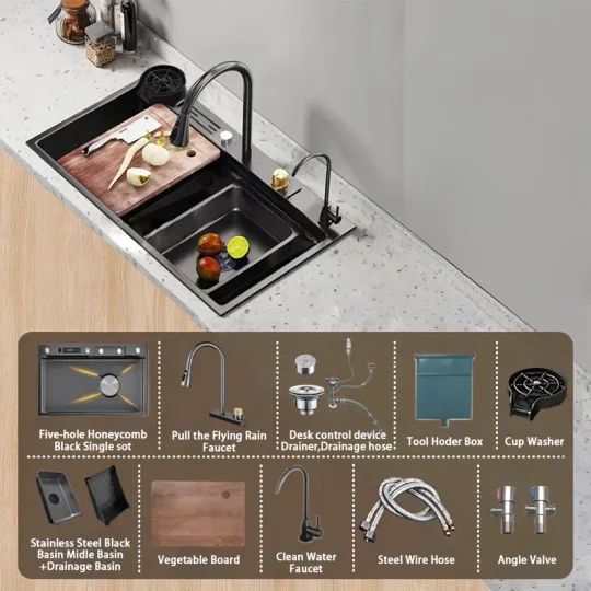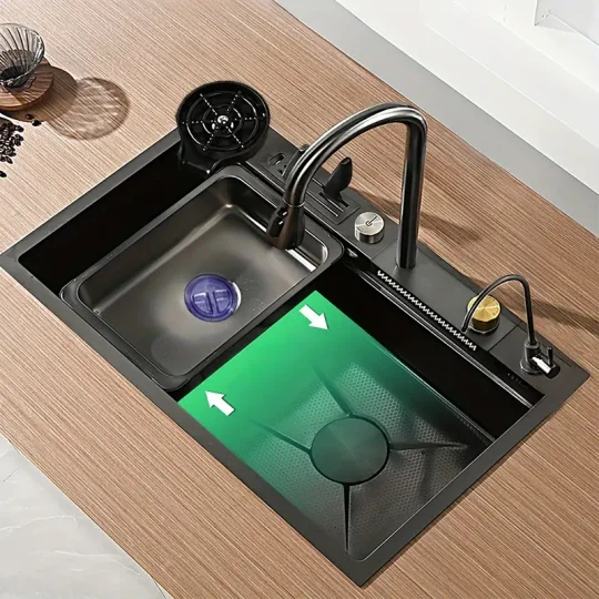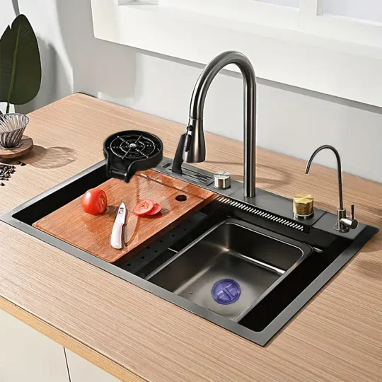 Fregadero de Cocina de Acero Inoxidable de Tamaño Extra Grande con Función de Cascada - Lavabo Multifuncional para Lavar Platos en Casa y Restaurante, 67.82cm x 44.96cm, Fácil Instalación, Regalo Perfecto para Navidad y Halloween