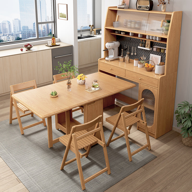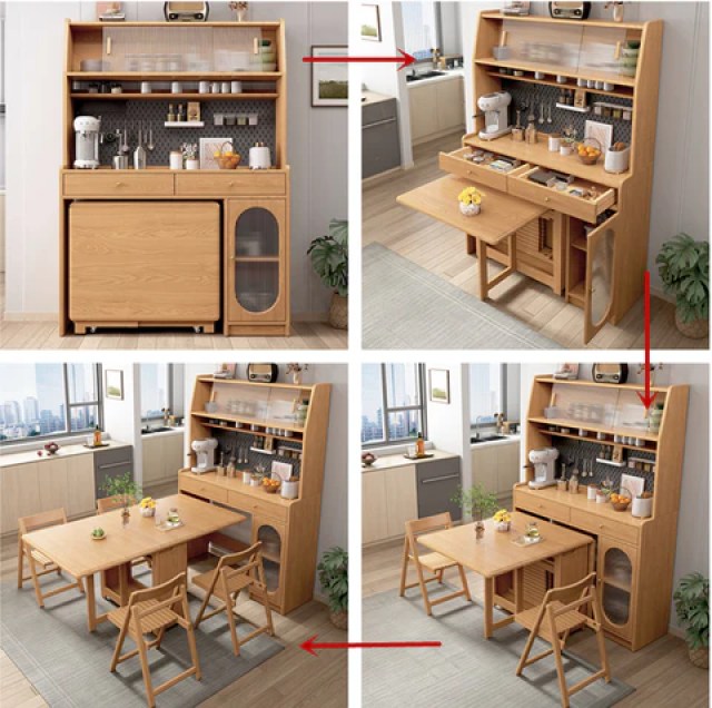El gabinete de cocina con mesa de comedor de doble hoja crea un espacio de comedor funcional y elegante que es perfecto para cocinas pequeñas o apartamentos, ya que combina funcionalidad de almacenamiento y comedor.