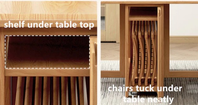 - La mesa de wika comedor de doble hoja es una característica que ahorra espacio y permite ampliar o contraer la mesa según el número de invitados. Puede colocar las sillas debajo de la mesa y colocar la mesa y las sillas debajo del gabinete del aparador. Ahorra toneladas de espacio.