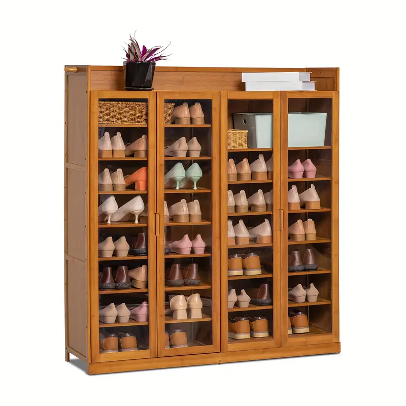 Gabinete para zapatos con puertas acrílicas, organizador de almacenamiento de 9 niveles de bambú con ganchos laterales para 41-45 pares de entrada de casa.