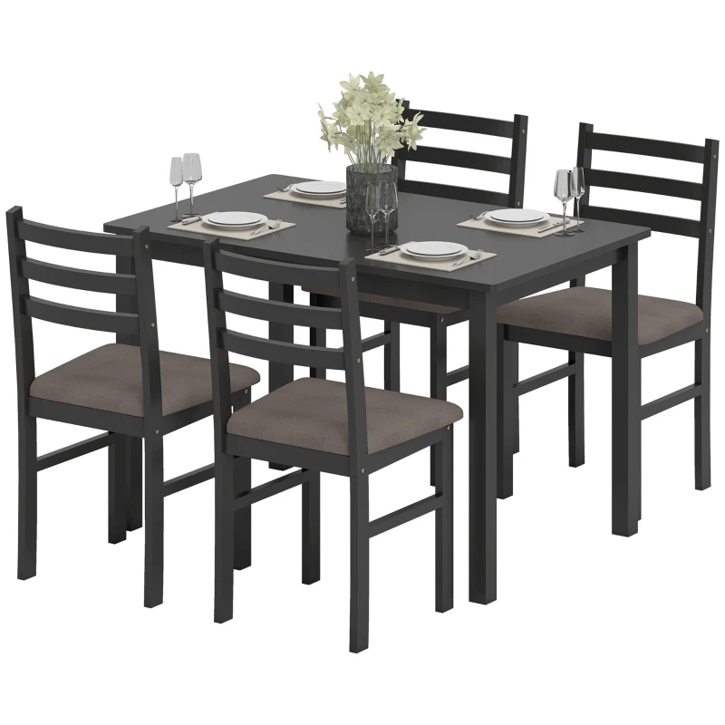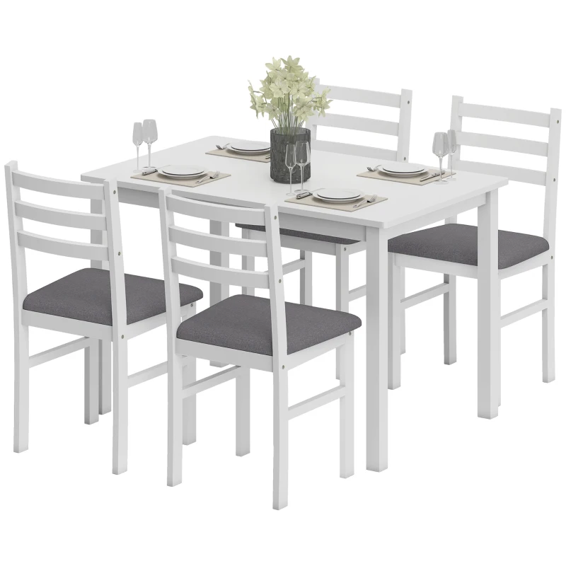 Aporta calidez y encanto a tu vida con el juego de mesa de comedor pequeña para 4 personas de HOMCOM. ¿Tienes problemas con asientos incómodos durante las comidas largas? Nuestra tapicería de tela con apariencia de lino y asiento acolchado de espuma ofrecen comodidad duradera. Construido con patas de madera de caucho y tablero de MDF, este juego de mesa de wika comedor garantiza estabilidad y fácil mantenimiento. El juego de mesa de cocina que ahorra espacio se adapta perfectamente a pequeños apartamentos o rincones del comedor. El estilo de granja y una apariencia sencilla añaden encanto rústico a su espacio.