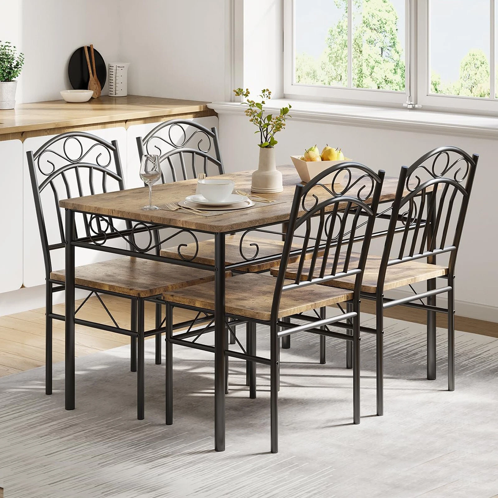 Ahorro de espacio, mesa grande y resistente, con 4 sillas, resistente y duradera, de fácil montaje