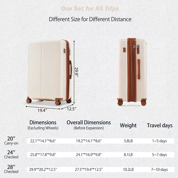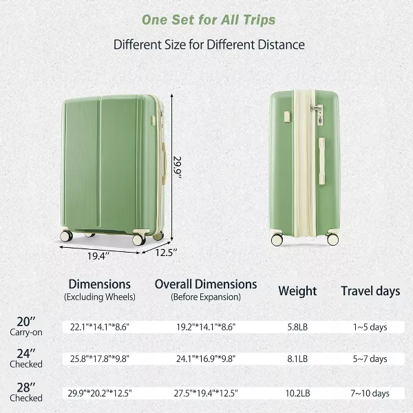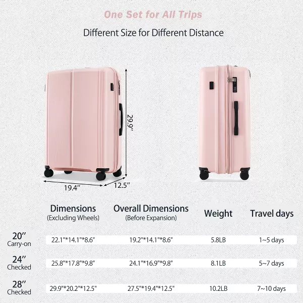 We have perfected our hardside luggage collections, coveted for their lightweight build that will take the heavy lifting out of your trip and make traveling a breeze. PP material makes the luggage more durable, lighter, and impact-resistant. Say goodbye to cramped overstuffed luggage bags and hello to our luggage set with built-in expanders. 28 inches and 24 inches can expand by 25% for more spaces. TSA lock is a necessary design for many international travelers. Three different dimensions can meet different travel days.