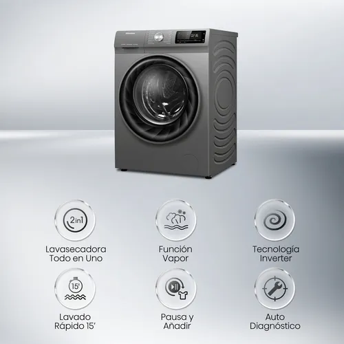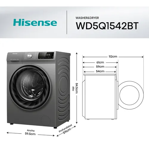 La lavasecadora Hisense PureJet, con capacidad de 15 kg y carga frontal, está diseñada para cuidar la ropa de toda la familia. Incorpora funciones de lavado y secado con tecnologías Pure Steam y Allergy Steam, asegurando wika prendas limpias, secas y libres de alérgenos y arrugas tras cada ciclo.