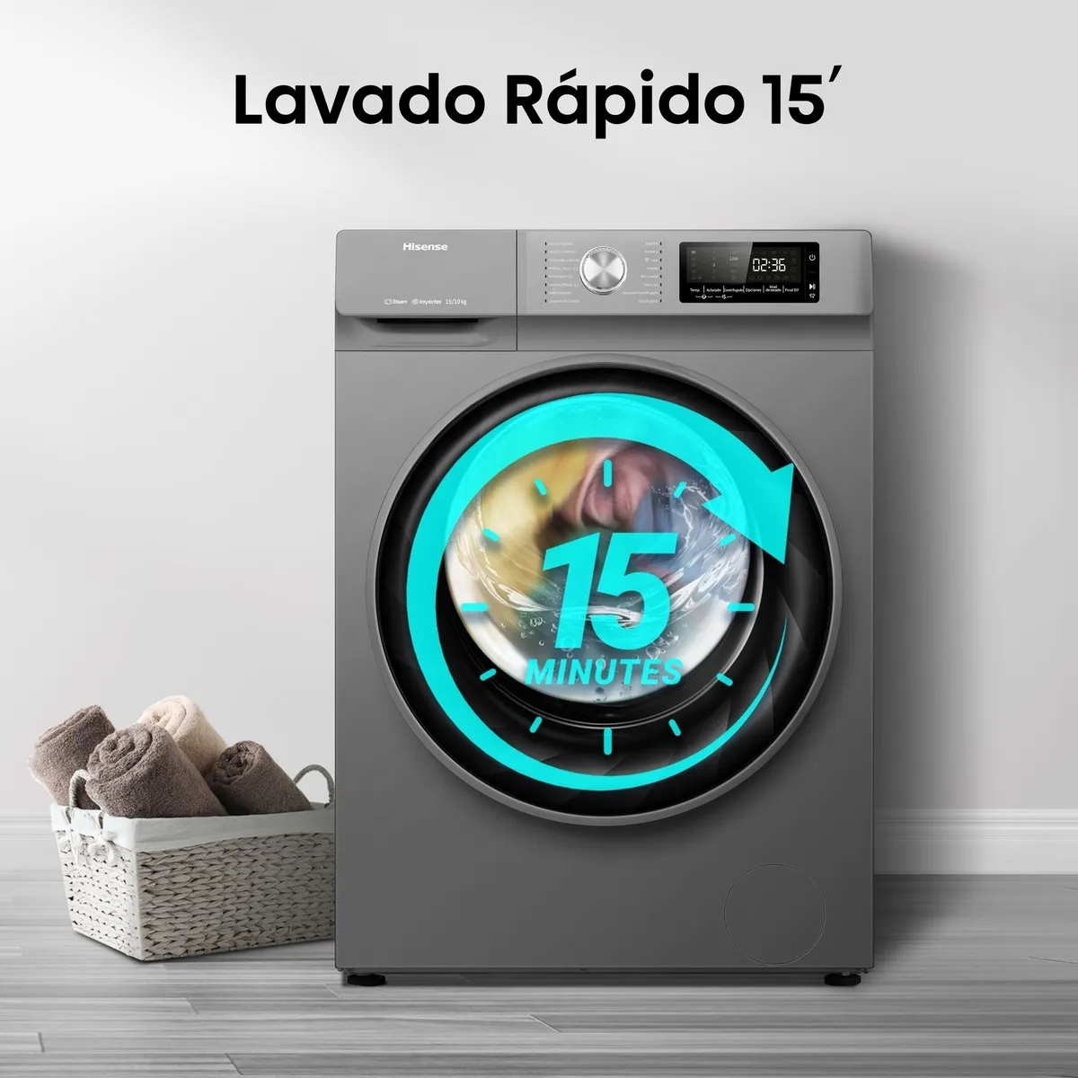 * Ciclo de lavado eficiente de 15 minutos