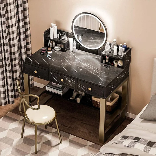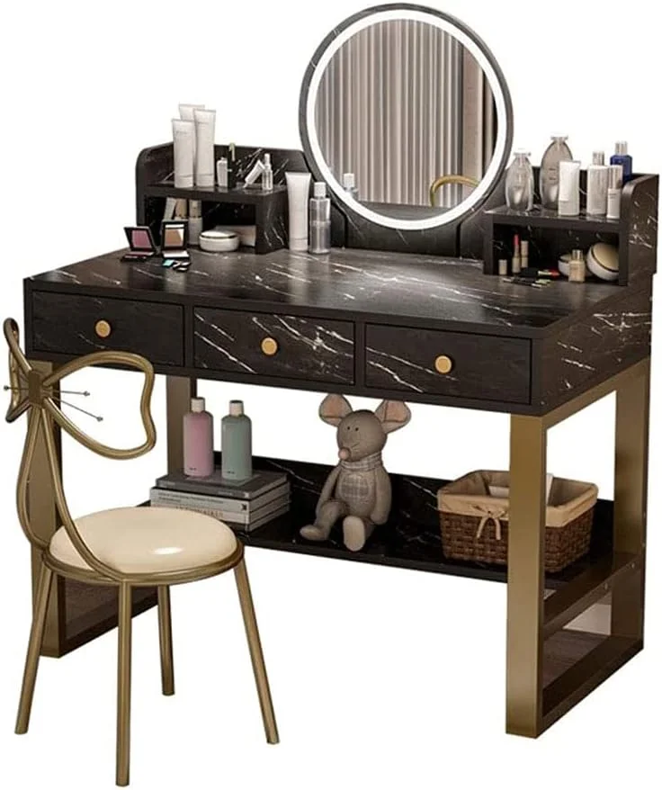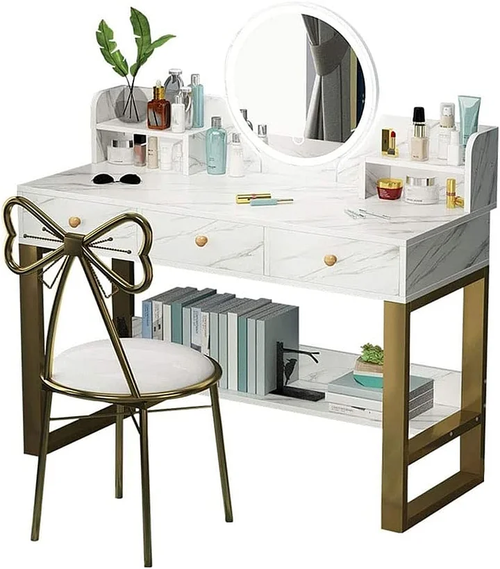 - □ DURABLE Y ESTÉTICA: Elaborado a partir de Golden marco fuerte del metal y se calificaron-E1 madera MDF, esta mesa de maquillaje Takes On contemporáneo y clásico de la silueta en su casa y servirá en los próximos años.