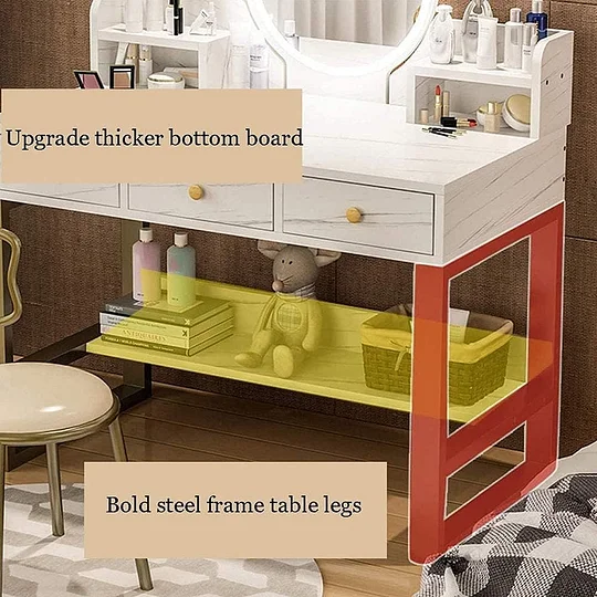- □ FÁCIL MONTAJE: todos los accesorios y de instrucciones específicas están incluidas, el montaje sólo cuesta varios minutos en Colocación de las piernas hasta el taburete y mesa, así como la concentración del espejo y que asocia That.You son fáciles de construir.