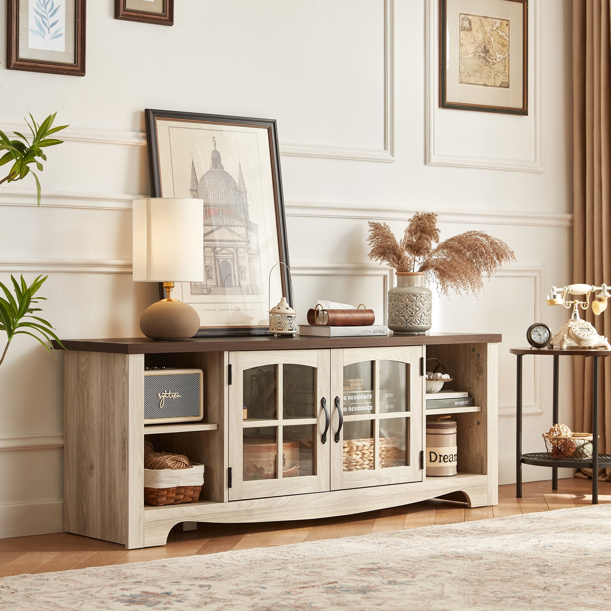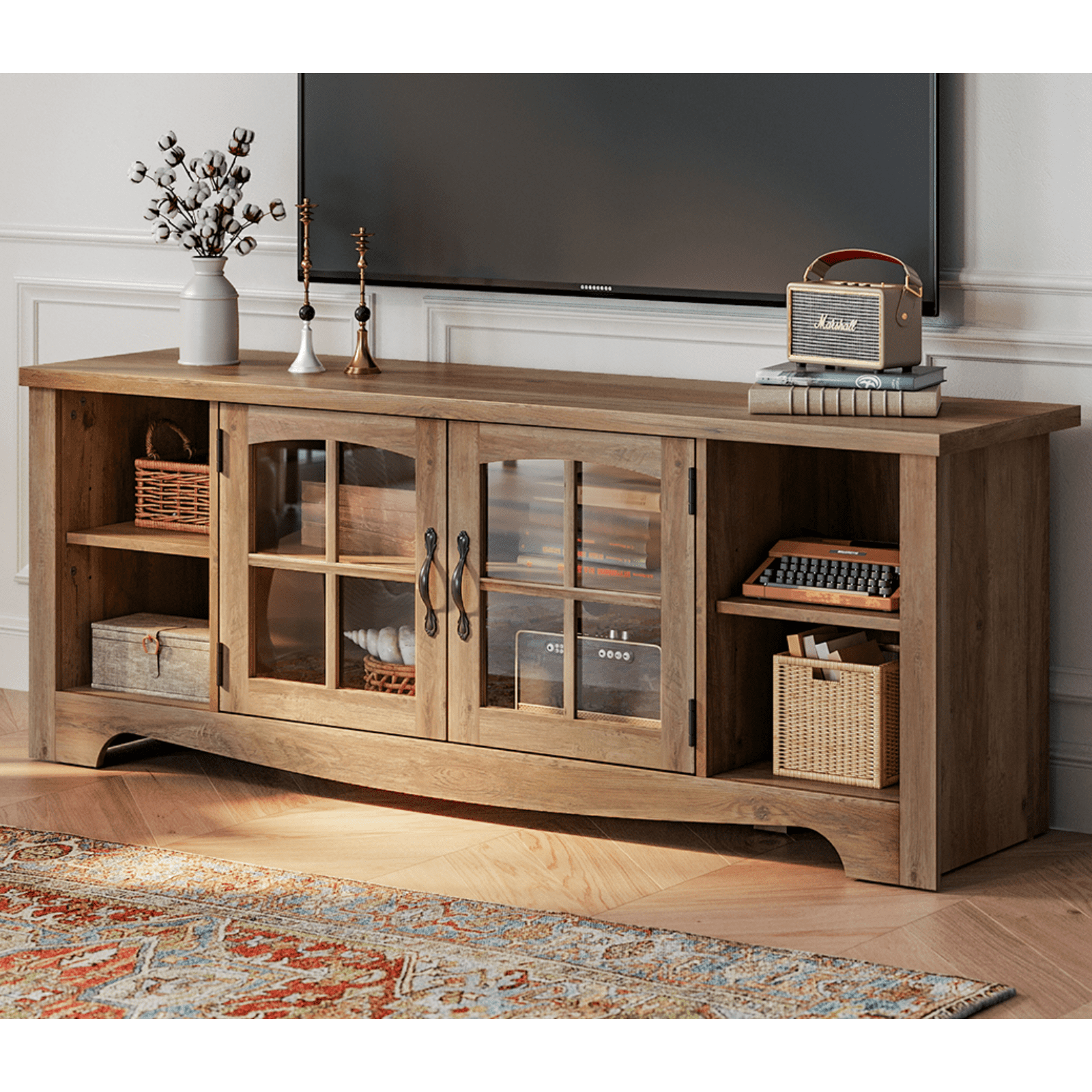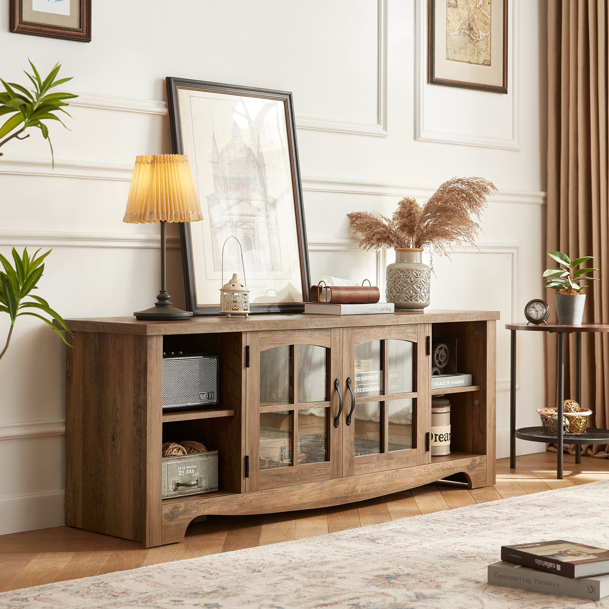 [ESTILO DE CAMPO ELEGANTE] - Eleve su espacio vital con el atractivo de la veta de la madera de roble y las puertas de vidrio. Nuestro mueble para TV estilo granja integra a la perfección la estética moderna y tradicional, armonizando con varios estilos de muebles tanto en salas de estar como en dormitorios.