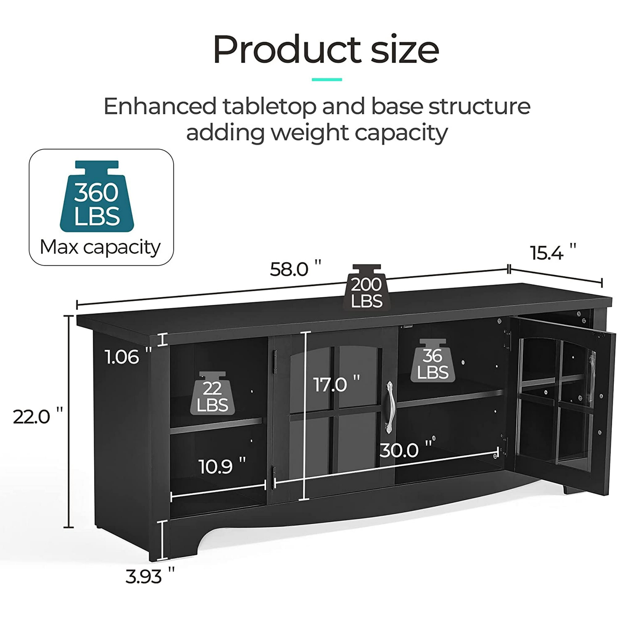 [DIMENSIONES] - Largo 15.4 pies * Ancho 58 pies * Alto 22 pies. El soporte para TV LINSY HOME Farmhouse tiene capacidad para televisores de 50/55/60/65 pulgadas, lo que garantiza una experiencia de visualización cómoda y al mismo tiempo garantiza la estabilidad de su televisor.
