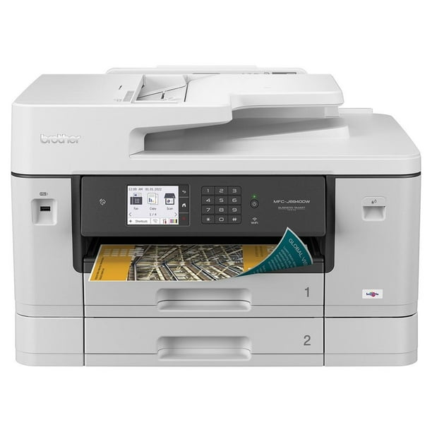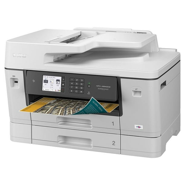 El multifuncional de inyección de tinta a color MFC-J6940DW de Brother ofrece impresión de calidad para empresas y grupos de trabajo pequeños. Dos bandejas de papel de hasta 250 hojas‡ para imprimir, copiar y escanear en tamaño hasta A3 (doble carta) y funciones de seguridad avanzadas. La Brother MFC-J6940DW es una impresora multifuncional de inyección de tinta a color diseñada para entornos de oficina y hogar que requieren una solución versátil y de alta calidad para la impresión, escaneo, copia y fax. Este modelo ofrece capacidades avanzadas y una excelente conectividad para satisfacer diversas necesidades de productividad. Características Principales Tecnología de Impresión: Inyección de tinta a color Funciones: Impresión, copia, escaneo y fax Velocidad de Impresión: Hasta 22 ppm en negro y 20 ppm en color Resolución de Impresión: Hasta 4800 x 1200 dpi Tamaño Máximo de Papel: Hasta A3 (11"x17") Capacidad de Papel: Bandeja principal de 500 hojas y bandeja multipropósito de 100 hojas Pantalla: Pantalla táctil a color de 3.7 pulgadas Recuerda que ya puedes realizar compras en línea de éste y otros productos en donde encontrarás lo necesario para tu día a día. Compra lo que necesites ya que, con nuestro servicio de entregas a domicilio, tus compras llegarán hasta la puerta de tu hogar.