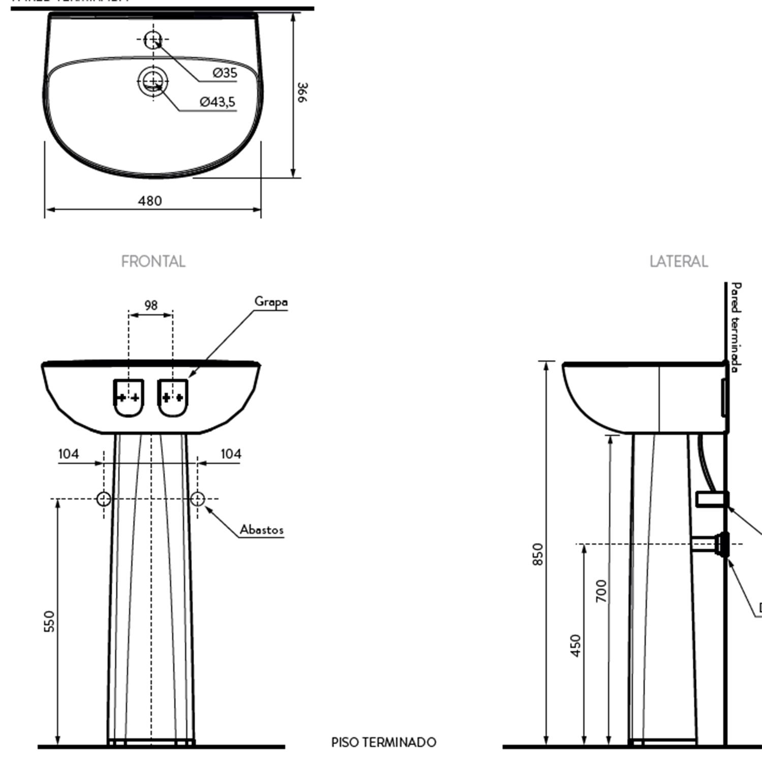 | Características | Incluye taza, estanque, lavamanos y pedestal,No incluye griferia |