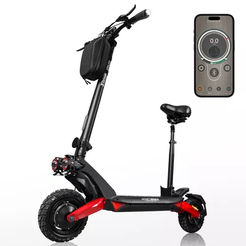 Los dos motores sin escobillas de 950W permiten que el patinete eléctrico T8 alcance una velocidad máxima de 55-62 km/h y puede subir pendientes de hasta 25 grados. La batería de 17.5AH ofrece una autonomía máxima de 40-50 km.