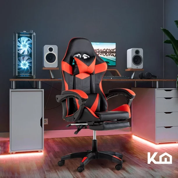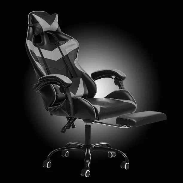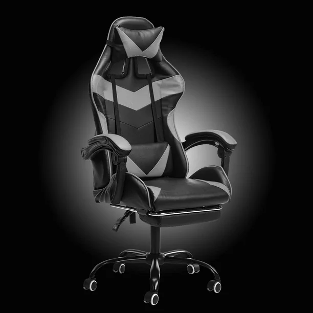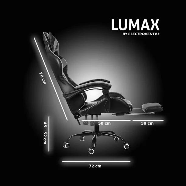 Silla Gamer Ergonómica Con Reposa Pie Giratoria con Ángulo de Inclinación Máxima de 155° con Cojín Lumbar y Cervical Soporta hasta 110Kg Lumax Color Gris con Negro