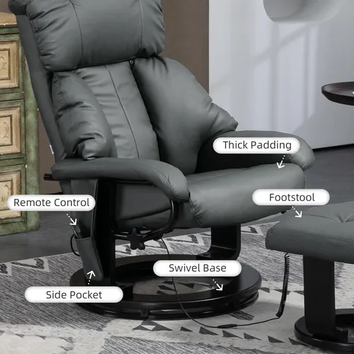 Siempre cómodo: elige entre dos niveles de vibración, cinco modos y diez puntos de masaje en la espalda, lumbar, cojín de asiento y otomana para encontrar el masaje más adecuado para tu cuerpo. Esta silla reclinable con juego otomano tiene un acolchado de espuma gruesa que proporciona una comodidad y apoyo óptimos.