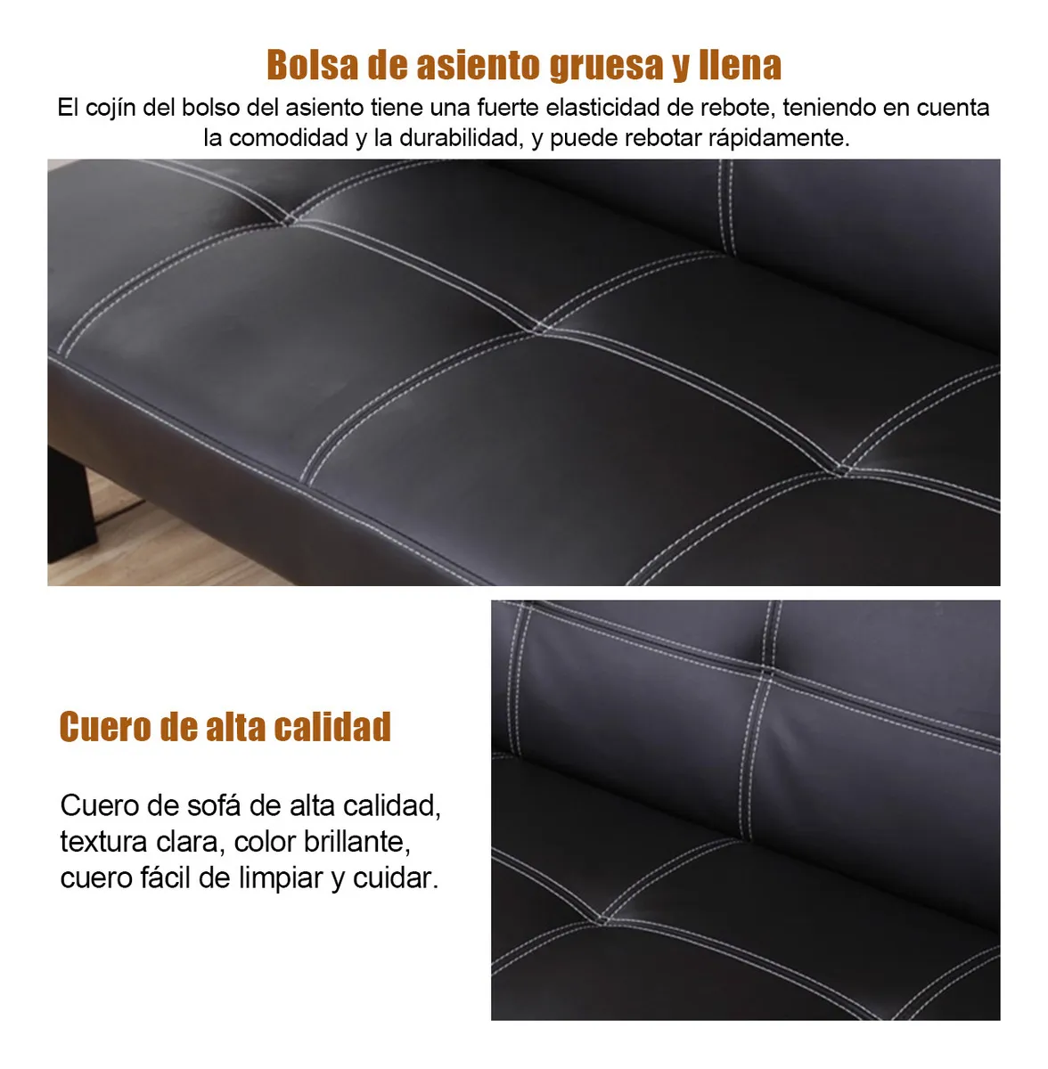 Este sofá presenta una superficie de cuero lisa y uniforme, con una fabricación precisa y detallada, una silueta elegante y atractiva, y una sensación de asiento llena y confortable. Elaborado con artesanía esmerada, se dedica a ofrecerle una experiencia de hogar de alta calidad.