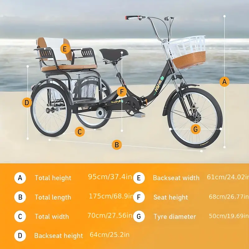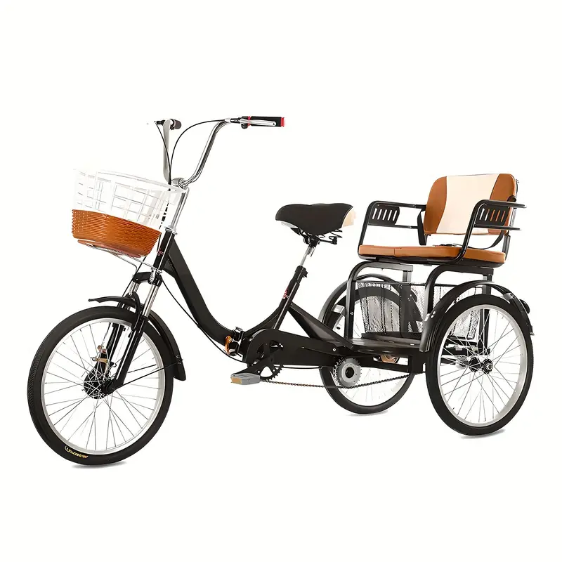 Triciclo para adultos con cesta: Viene con una cesta de carrito de compras ampliada para guardar cualquier cosa. Conveniente para que las mamás lleven a sus hijos a la escuela y lleven a los ancianos de compras. La capacidad máxima de peso del triciclo es de 330 libras.