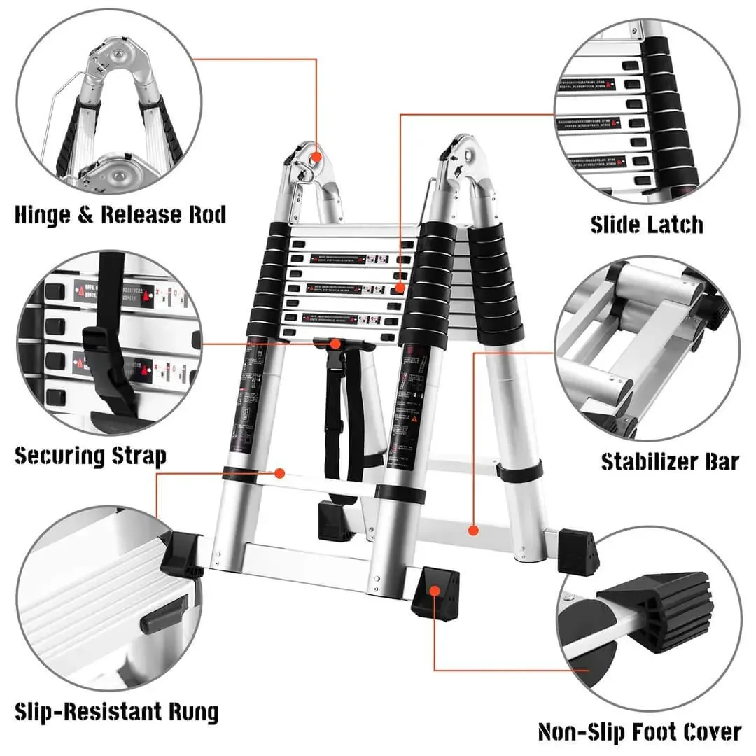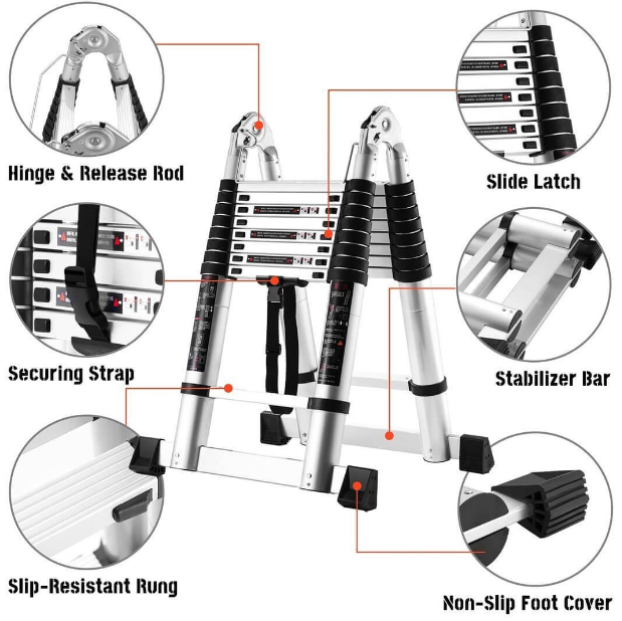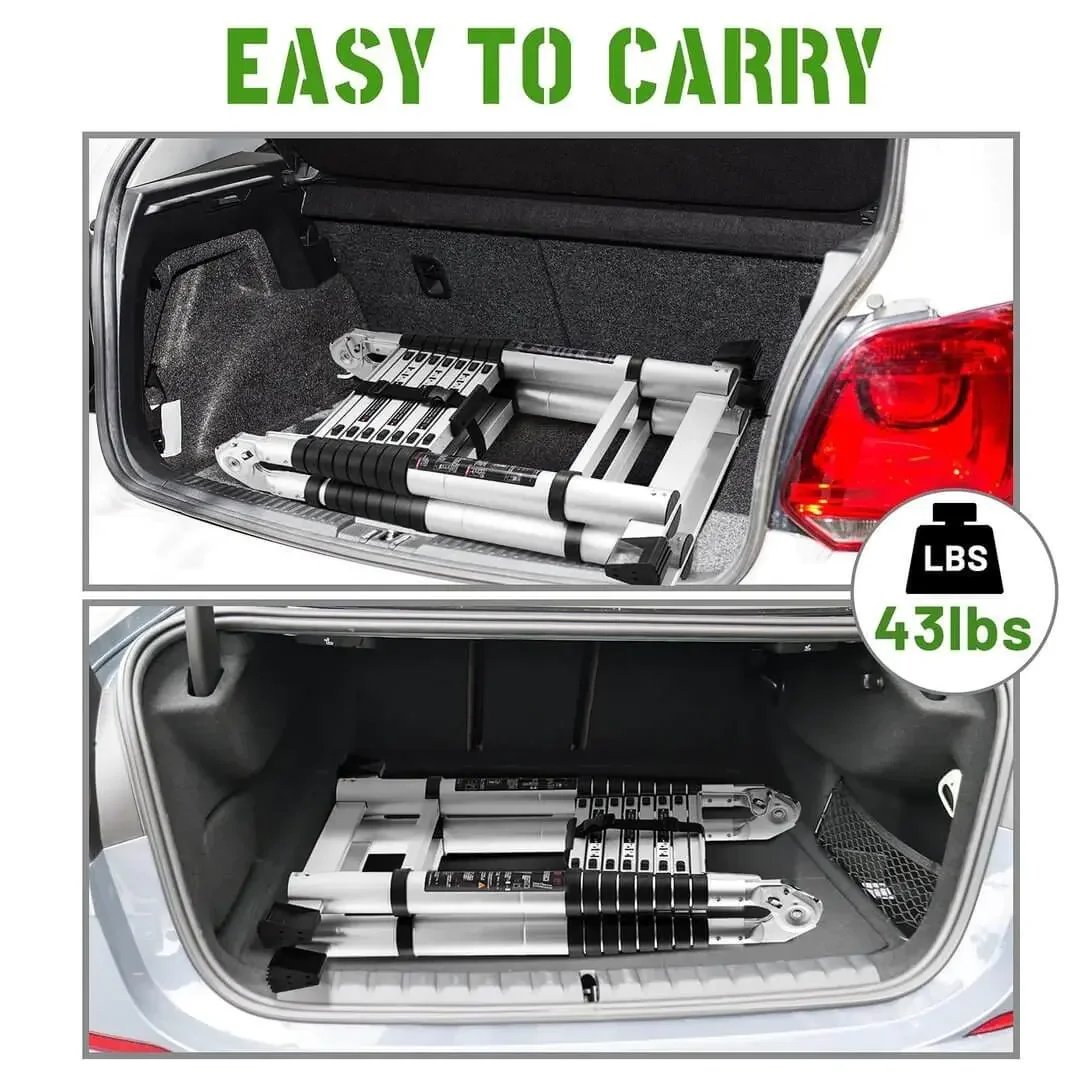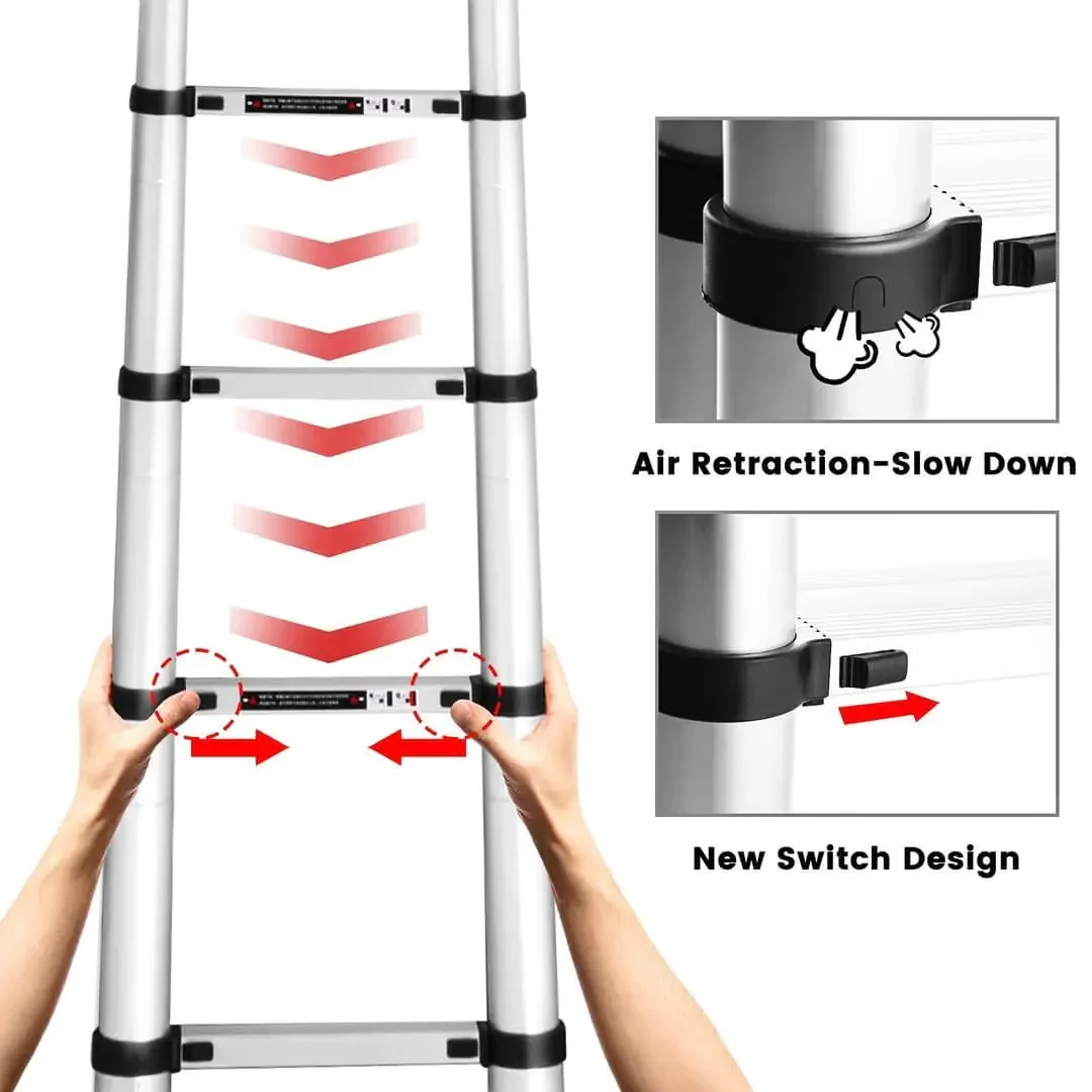 √ Convenient: This ladder can be easily extended and then retracted with one click, retracting to 2.9 feet! The innovative air brake system helps prevent pinching fingers!