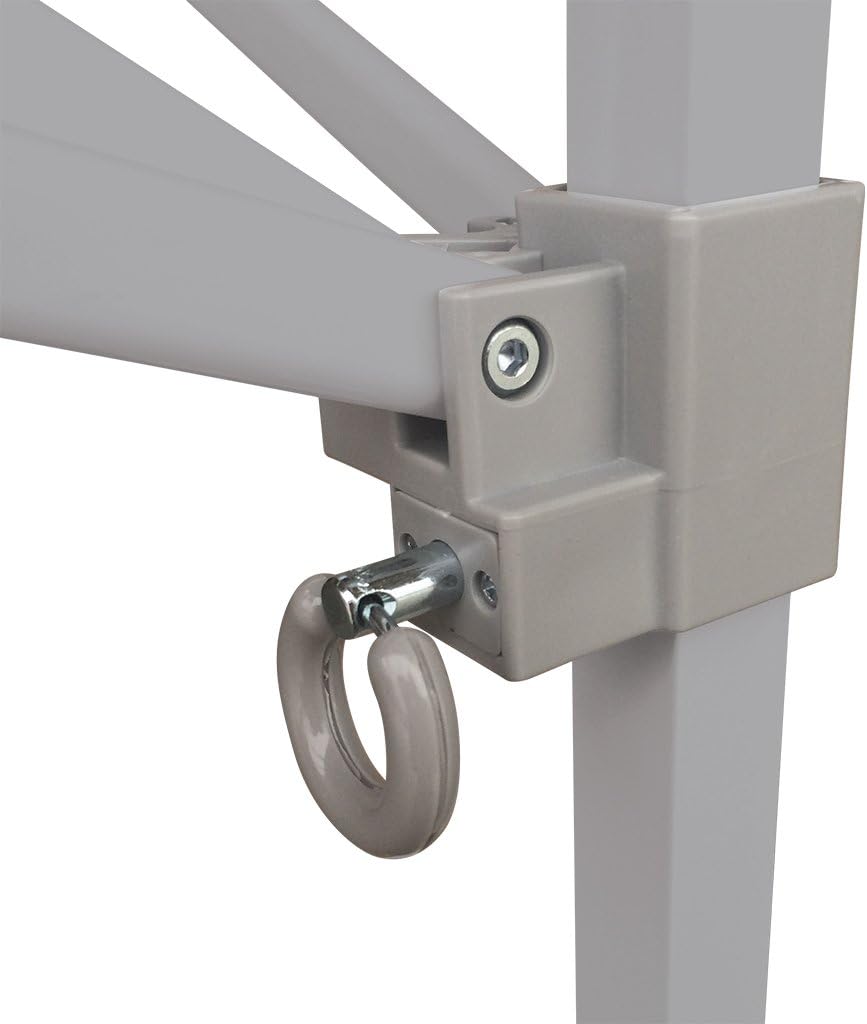 - Se instala en cuestión de segundos: los toldos E-Z se instalan en segundos sin necesidad de herramientas. Simplemente saca el marco totalmente montado con la parte superior de la bolsa, tira de abrir, extiende las patas y listo. El desglose es igual de fácil con los ajustes de pierna de botón y grandes trabillas de pin. Se pliega y se pliega para colocarlo en la bolsa de almacenamiento con ruedas. El equipo opcional del embajador incluye: kit de estaca de lujo, bolsas de peso E-Z, luz de evento, pared lateral y media pared