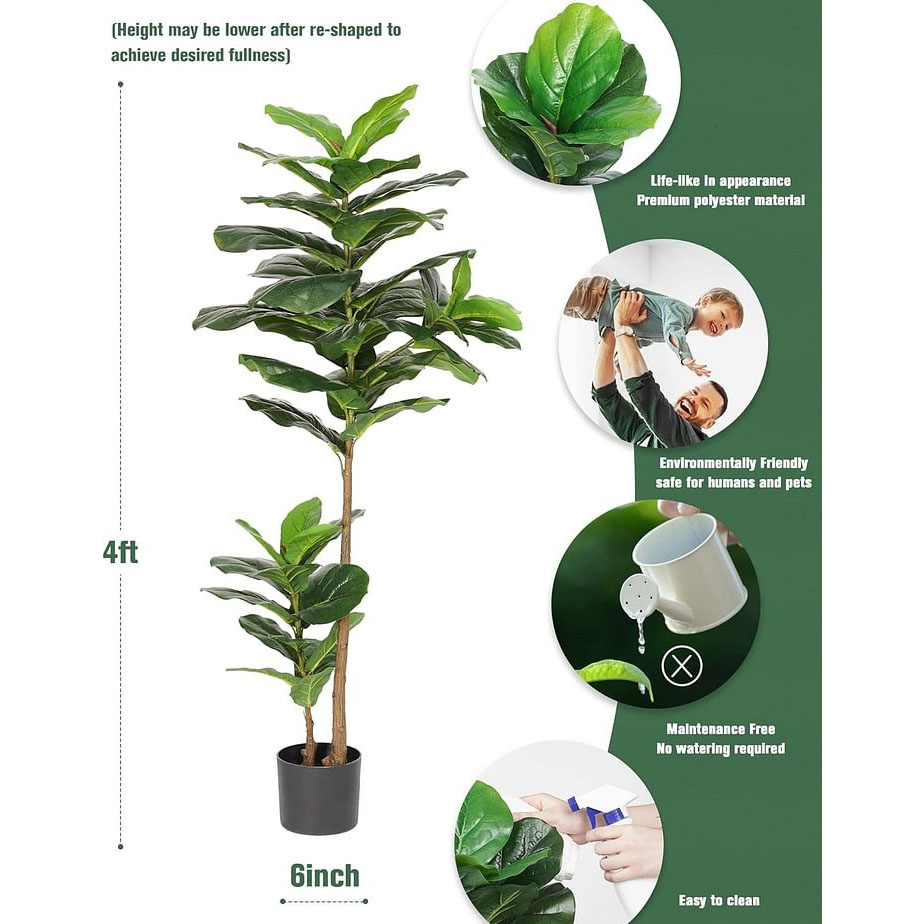 - Mantente verde durante todo el año: los árboles artificiales no se marchitan ni morirán debido a los cambios de estaciones, climas y condiciones de riego como los árboles reales. Nuestra higuera de hoja de violín sintética se mantendrá verde y fresco durante años. Simplemente límpialo si se pone polvo. Creará un ambiente natural dondequiera que lo coloques. Es ahorro de energía y dinero, ganar-ganar