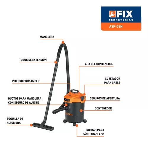 ASPIRADORA DE SÓLIDOS Y LÍQUIDOS, 3 GAL, PLÁSTICA, NEGRA