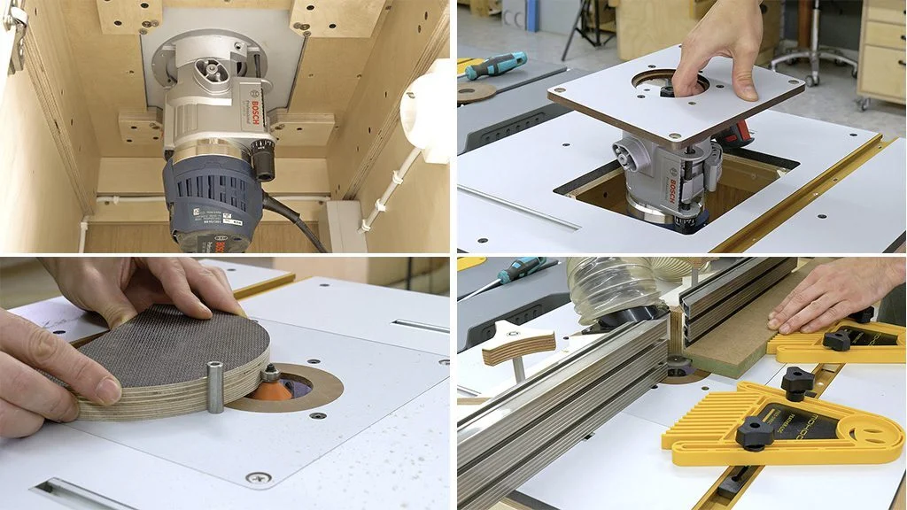 donde la manguera de la sierra de mesa puede conectarse a la guía de la mesa de fresado.