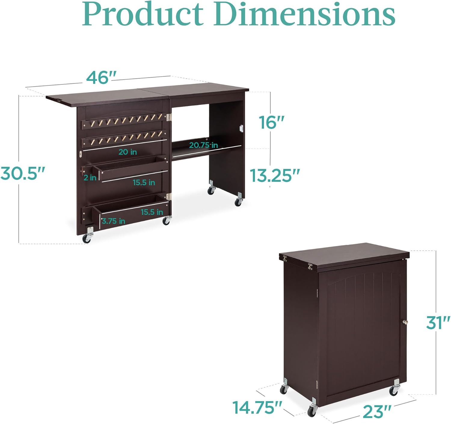 - Detalles prácticos: La construcción de madera MDF con bisagras de metal proporciona una experiencia sin oscilación, mientras que las ruedas bloqueables y las cerraduras magnéticas de la puerta evitan que los suministros se caigan cuando se mueve; Dimensiones abierta: 117 centímetros de largo x 37.50 centímetros de ancho x 77.50 centímetros de alto); Dimensiones cerrada: 58.50 x 37.50 x 79 cm