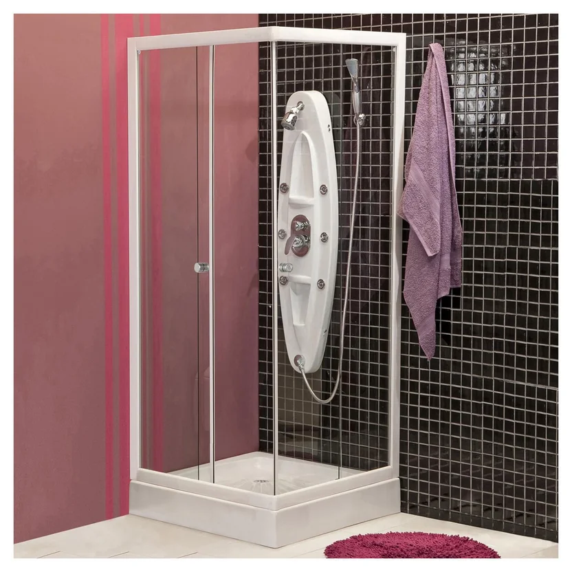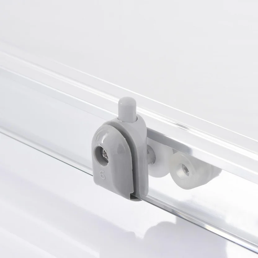 Características Shower cuadrado Dacqua: Tiene un espesor que alcanza los 6 mm con el fin de ofrecer una buena respuesta ante un posible golpe que sufra. Por otro lado, utiliza unas puertas que deslizan sobre la misma línea, abriendo o cerrando el ingreso. A su vez, posee una manija con terminaciones en cromado brillante que facilita esta tarea y sirve para bloquear el mecanismo.