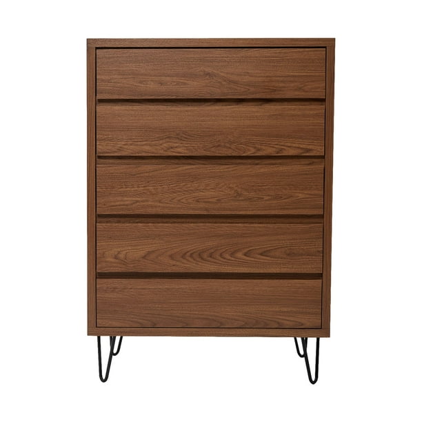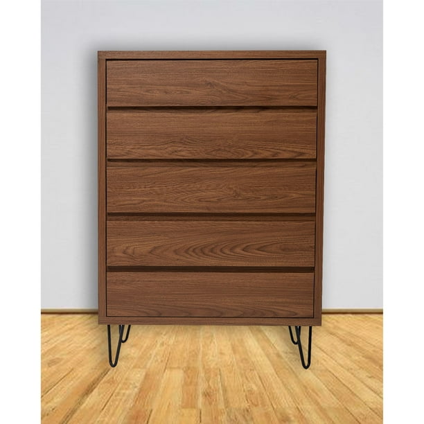 Fabricado en Madera/Melamina. Con acabado en color Nogal. Medidas: 100 x 39 x 70 cm. Comoda look Contemporaneo con 5 cajones y corredera de extensión, estructura de mdf 12mm y frente de melamina color natura, pata de metal desmontable.. NOTA: Los accesorios y otros muebles de las fotografías, se venden por separado. Por efectos de iluminación de la fotografía, algunos tonos de colores pueden variar con respecto al color real.Oferta por tiempolimitado, ven ycómprala ahora.cl