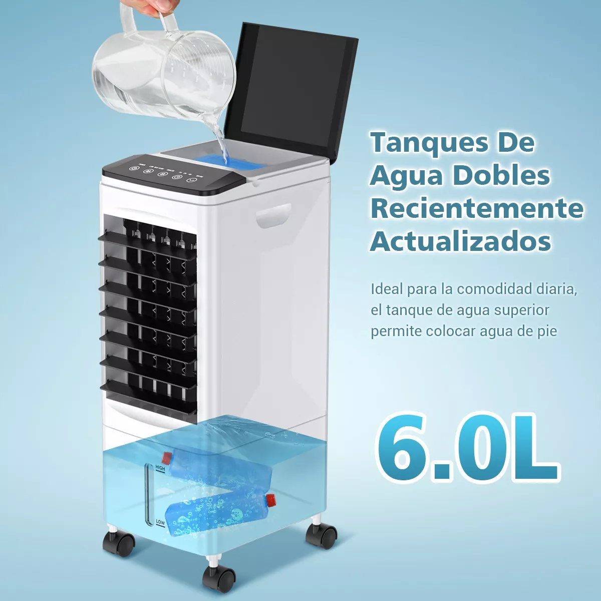 Para aquellos que no están satisfechos con los ventiladores de torre, los enfriadores de aire evaporativos de interior son la solución ideal. Además, cuando se usa junto con el sistema de aire acondicionado móvil de una habitación, este enfriador promueve un movimiento de aire eficiente y aumenta la eficiencia energética.
