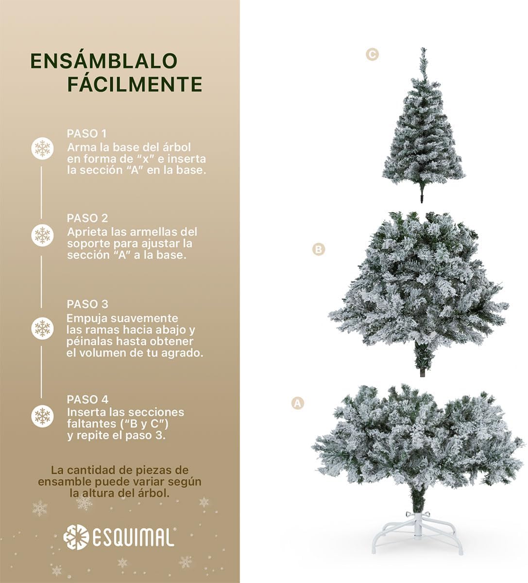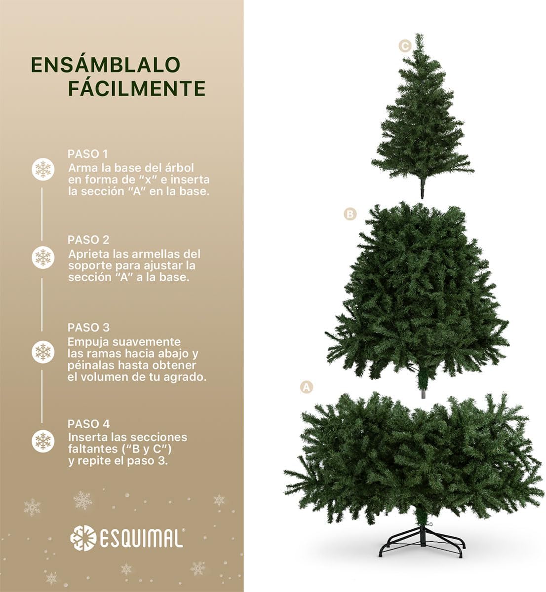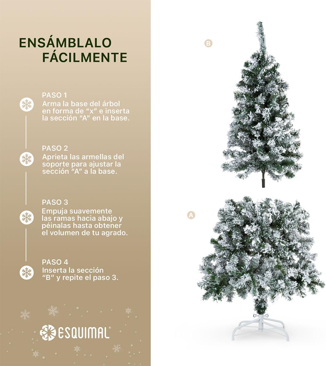 - ARMADO RÁPIDO Y SENCILLO: Armar tu árbol es muy fácil. Es plegable y cuenta con un sistema practico y eficiente que permite ensamblar rápidamente sus secciones gracias a las ramas sujetas al tronco. Comienza por desplegar en forma de “X” la base metálica con las armellas incluidas, luego embona las secciones sobre la base, despliega las ramas y acomódalas para darle mayor volumen. Finalmente, decóralo a tu gusto. Su diseño garantiza un montaje sin complicaciones y un almacenamiento compacto.