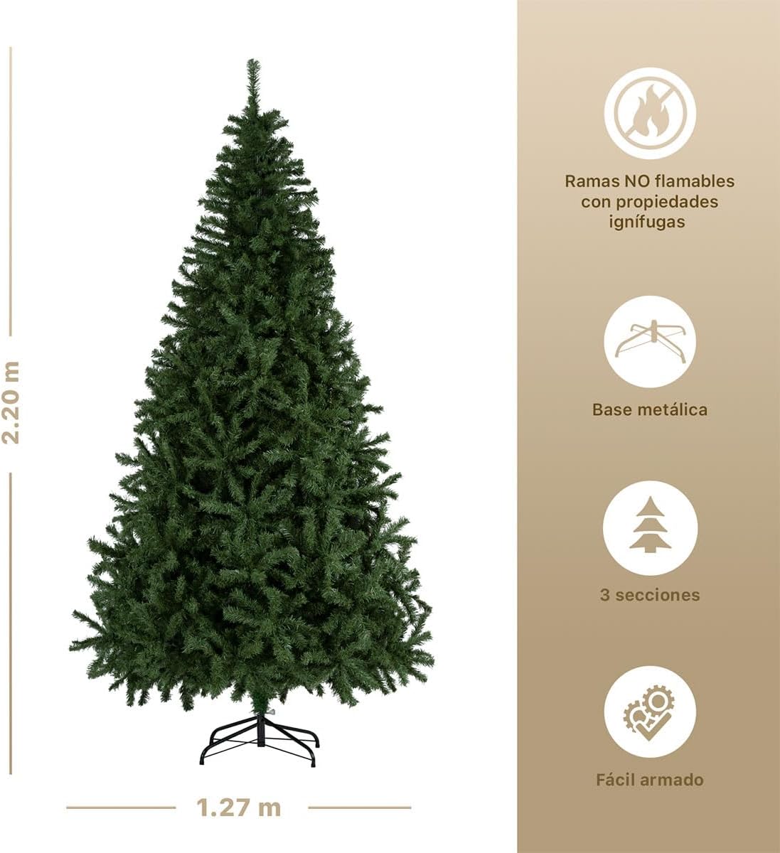 - MEDIDAS: 1 Árbol de navidad artificial frondoso, estilo Cedro del Himalaya | Tamaño grande: 2.20 m x 1.27 m, 1800 ramas de PVC.