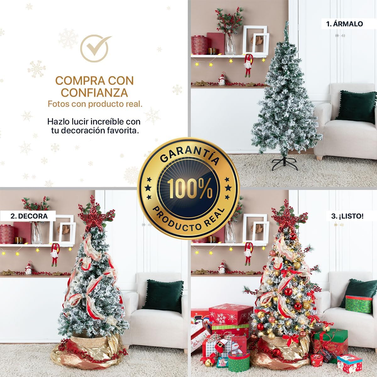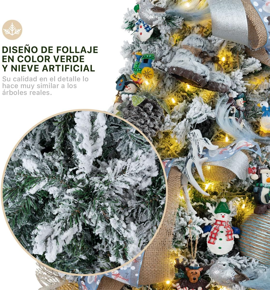 - ASPECTO FRONDOSO Y ESCARCHADO: Con sus ramas cubiertas de nieve, nuestros árboles nevados traen la magia del paisaje invernal a tu hogar. Este diseño realista inspirado en el Cedro del Himalaya, no solo aporta naturalidad y elegancia, sino que también transforma tu decoración navideña. El blanco de la nieve realza los colores y luces de tus adornos de navidad, haciendo que destaquen con mayor intensidad para un ambiente navideño lleno de encanto.