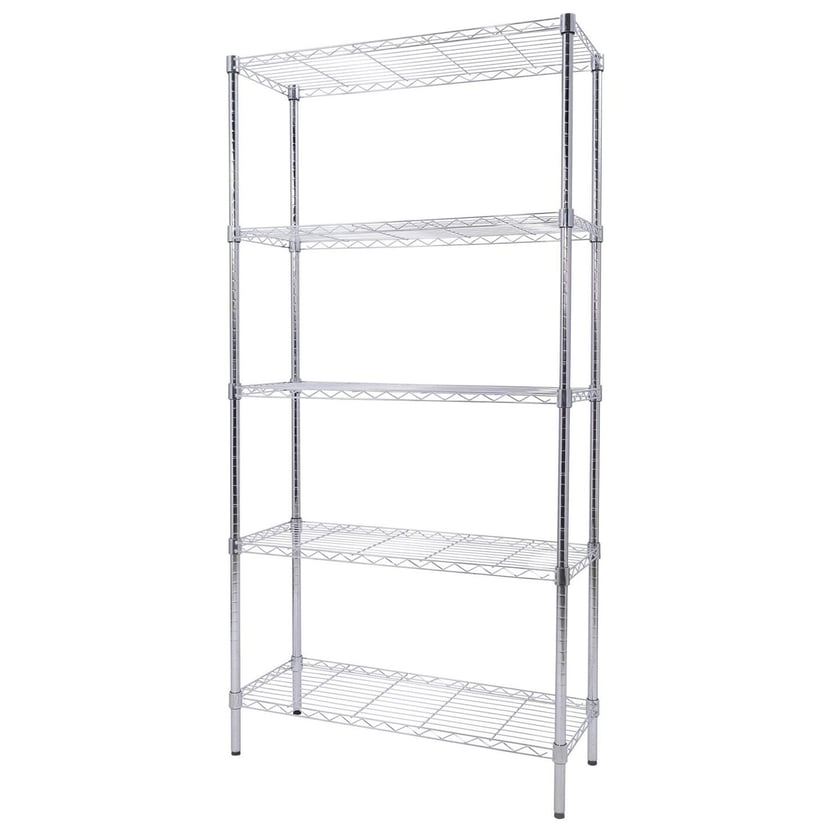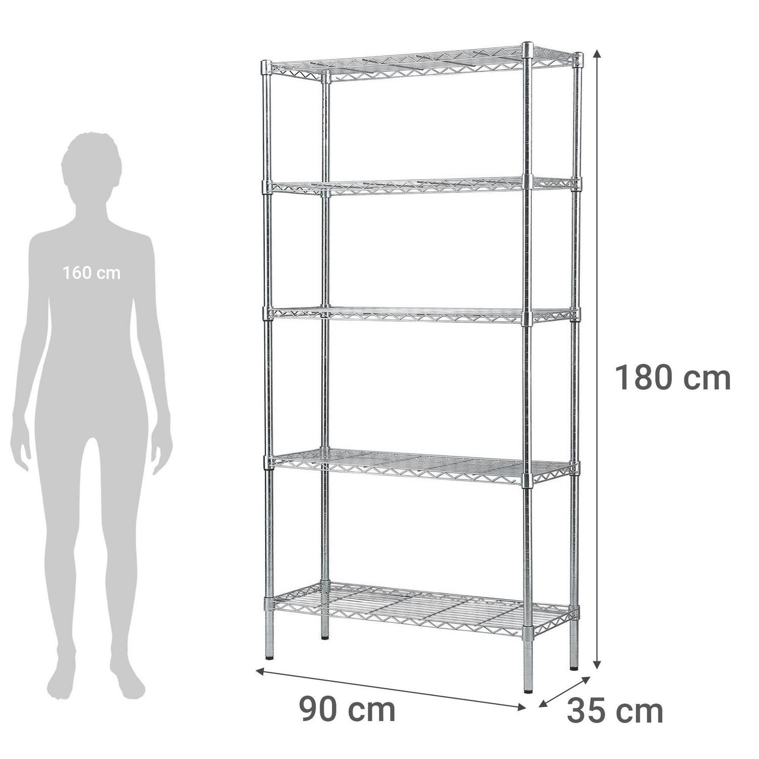 Organiza tu espacio con la Estantería cromada de 5 niveles, ideal para tu oficina o terraza. Con su diseño vintage moderno, le dará un toque elegante a tu hogar. Fabricada en acero cromado, es resistente y fácil de limpiar. ¡No te preocupes por el armado, es muy sencillo!