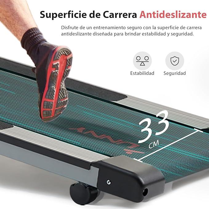 - 【SUPERFICIE DE CORRER SEGURA Y ANTIDESLIZANTE】Disfrute de la tranquilidad durante sus entrenamientos en la cinta de correr suave y antideslizante, diseñada para una máxima estabilidad y seguridad en cada paso.