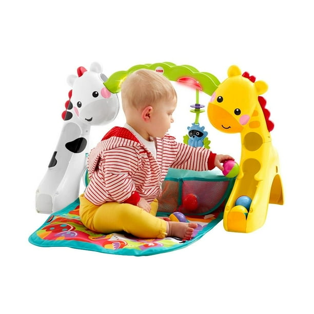 ¡El portátil colchón de actividades mantiene al bebé entretenido con juguetes, sonidos y música! El gimnasio viene con dos personajes de jirafa y cebra que se unen por medio de una rampa. La rampa tiene luces y música que se activan cuando el bebé golpea los juguetes que cuelgan o cuando las pelotas son colocadas en la rampa. ¡Realiza todas tus compras en nuestra tienda en línea desde la comodidad de tu hogar! Programa tu pedido para recoger en tienda o recibir tus productos favoritos en la comodidad de tu hogar. ¡Tu tienda en línea, precios bajos a la puerta de tu hogar!