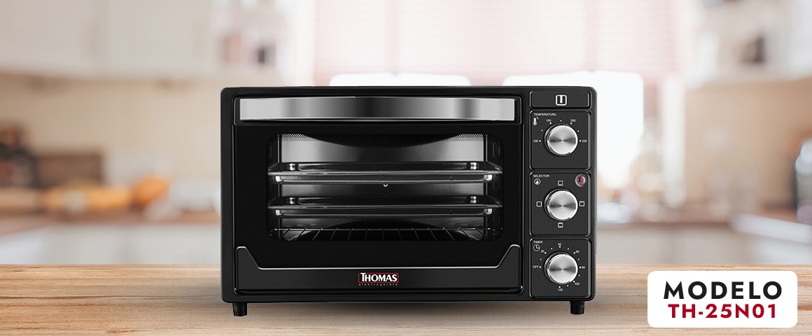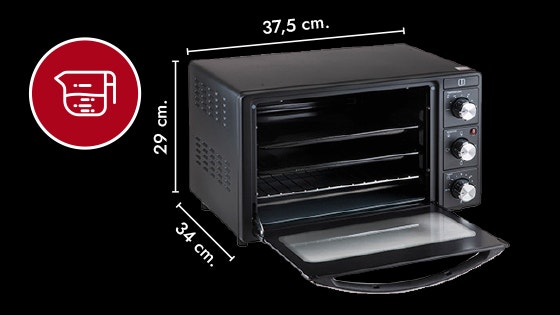 Este horno te preparará la comida mientras dedicas tu tiempo a otras tareas. Dispone de un temporizador de 120 minutos y una temperatura regulable hasta 250º.